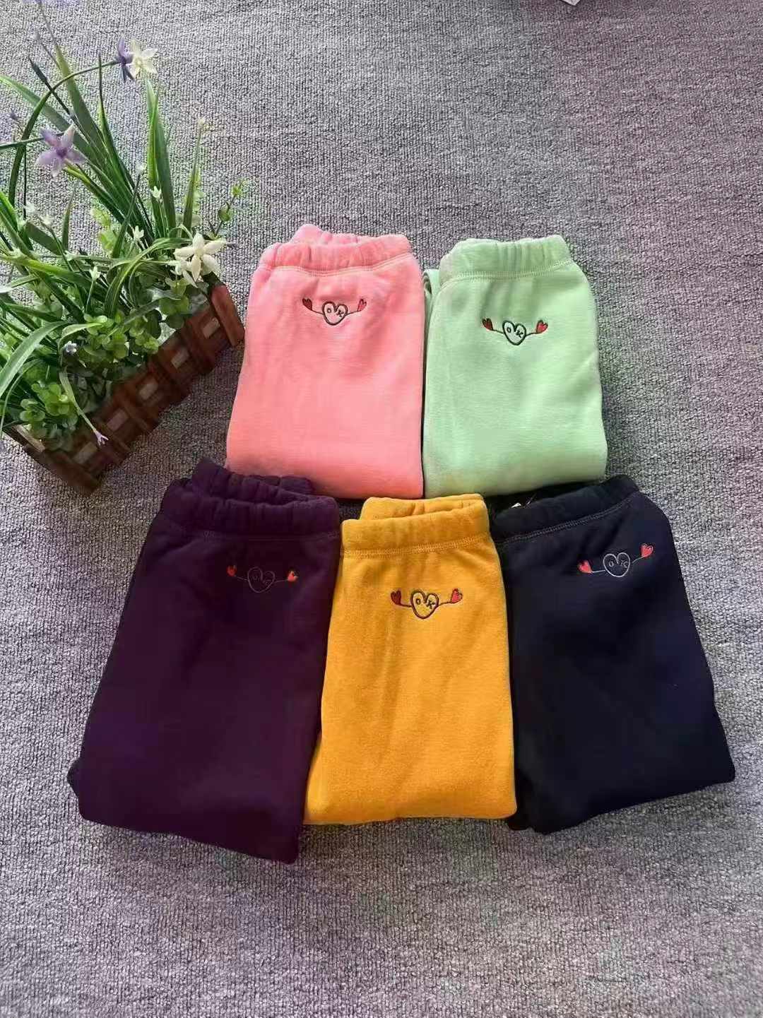 This is Clothing Stock Lots of branded kids thick thermal pants, total 1200 pieces, 5 colors for big kids, made of 90% high cotton.