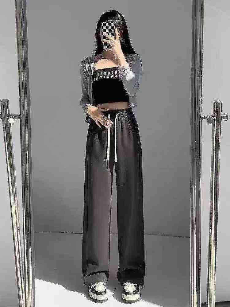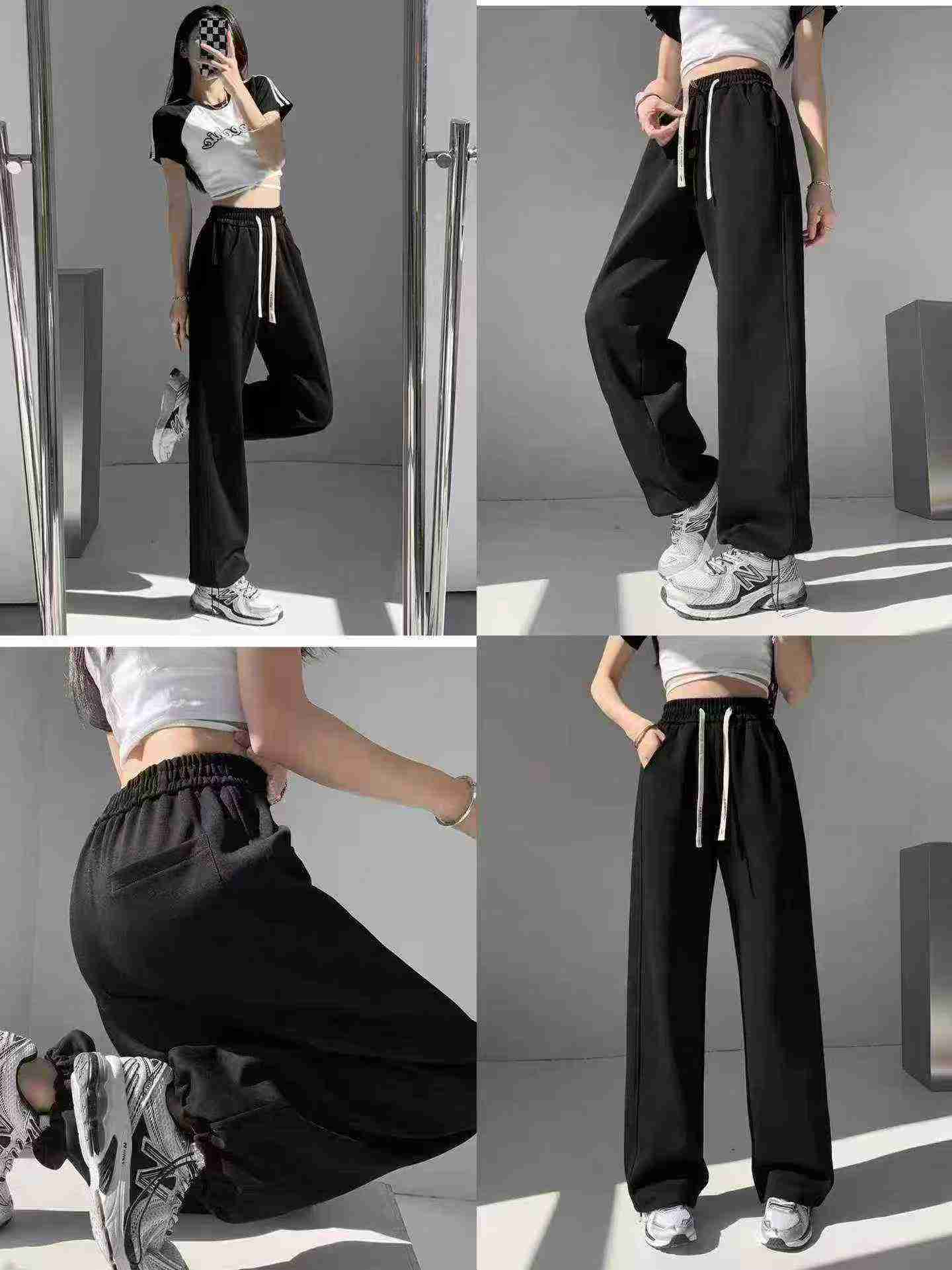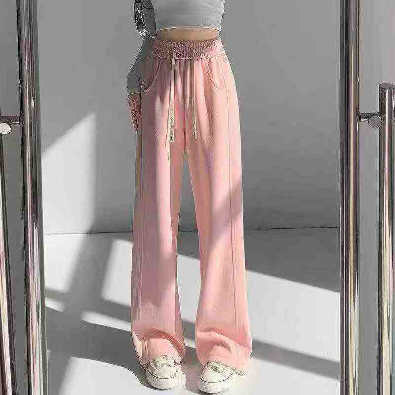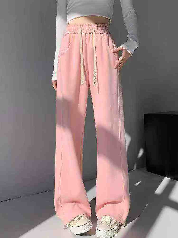1217 Pcs American Style Women’s Drawstring Casual Loose High Waist Straight Wide Leg Sweatpants Bulk Stock For Wholesale
