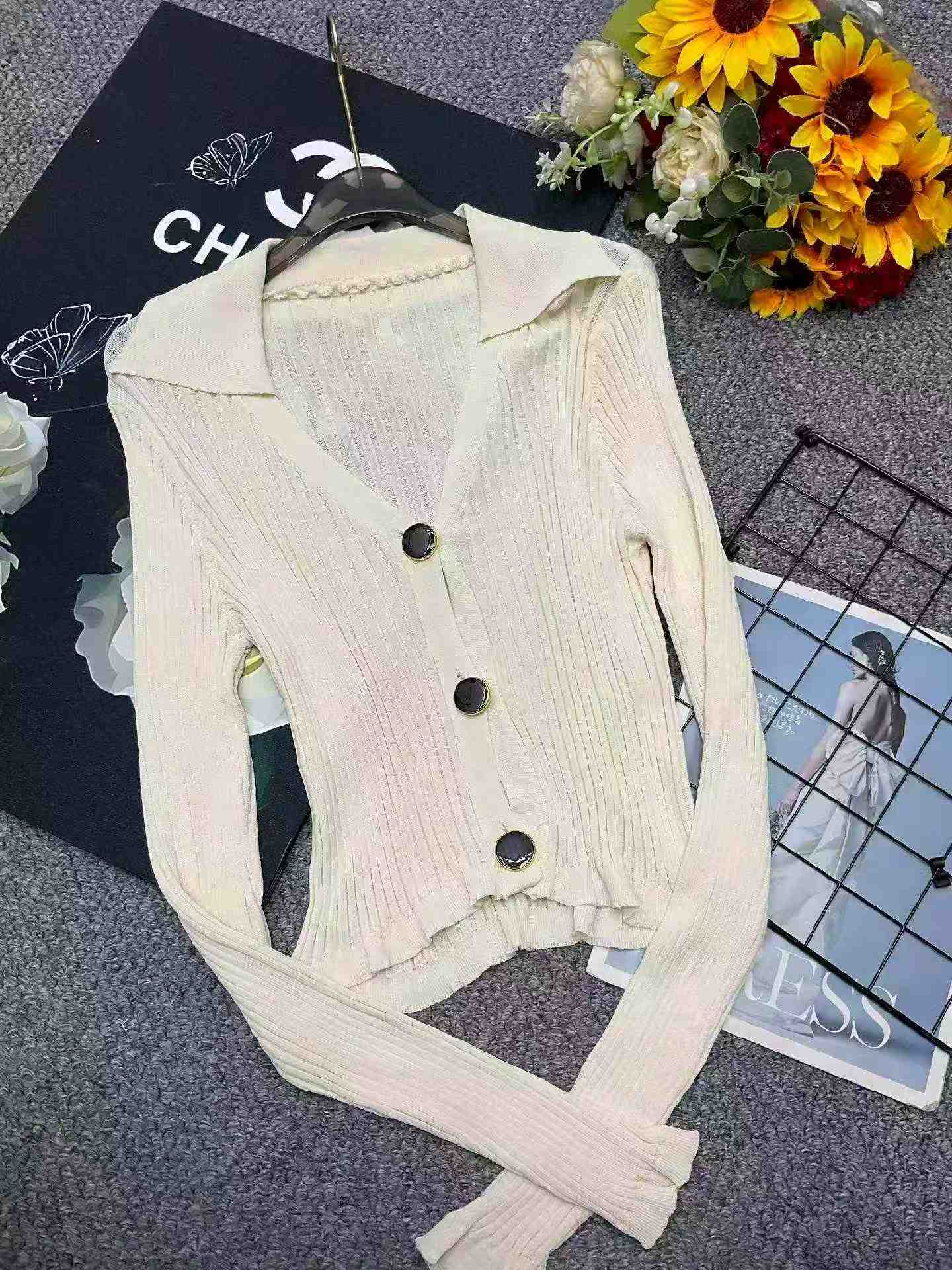 140pcs Spring Korean-Style Chanel-Inspired Stand Collar Ice Silk Knit Cardigans | Bulk Clothing Wholesale CNY6.4/PC