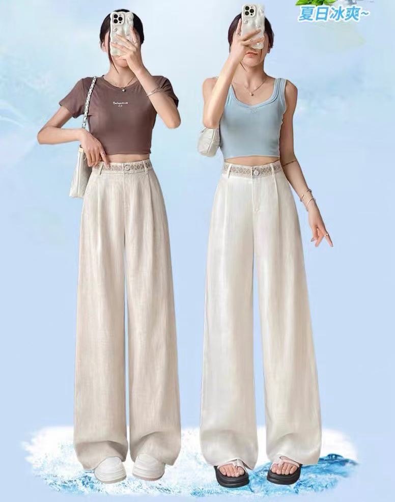 1632 Pieces One Size 2 Colors Ice Silk High Waist Wide Leg Loose Casual Pants Stock Wholesale