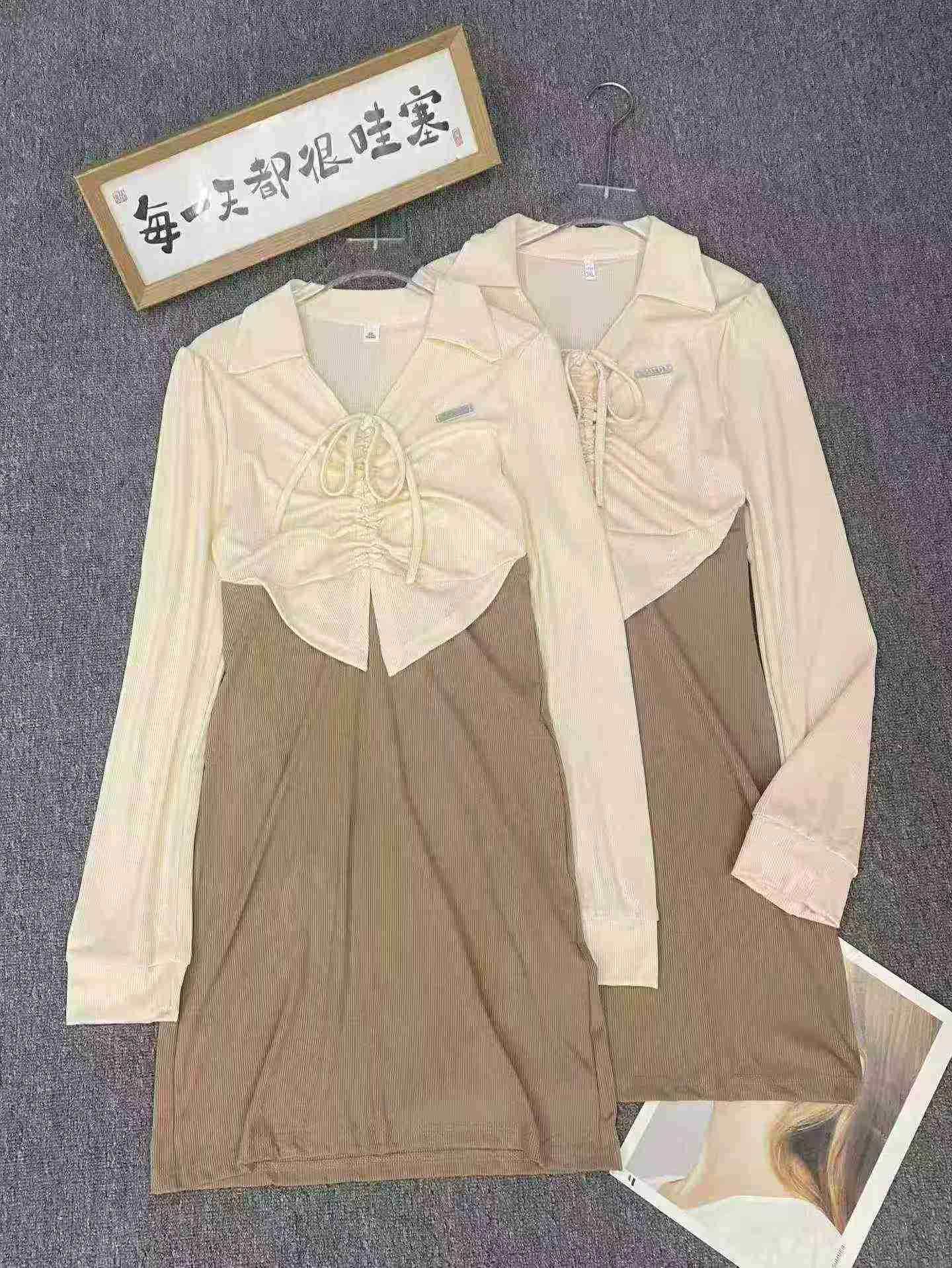 As a professional stock lot supplier, we provide quality stock clothing for global buyers. This listing is for our Chinese clothing stock lots, available for wholesale export at great value. This bulk clothing wholesale lot includes 166 pieces of elegant dresses, made of comfortable high elastic fabric. It features Polo collar, fake two-piece cut, drawstring pleats and contrast color splicing design, with sizes ranging from XL to 2XL, each piece comes with independent package.