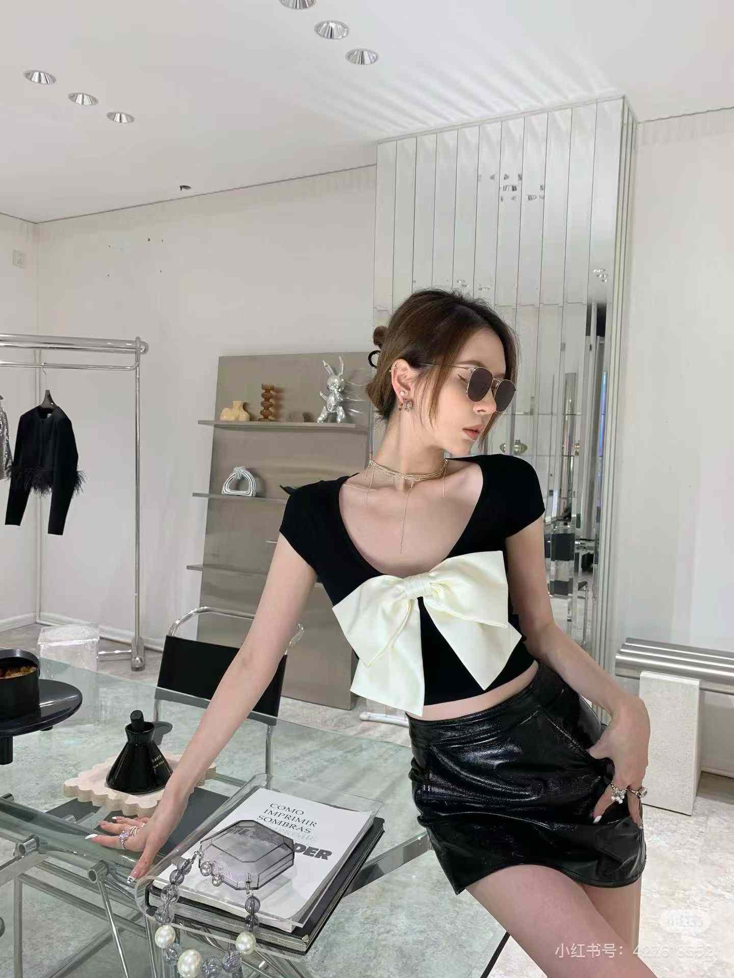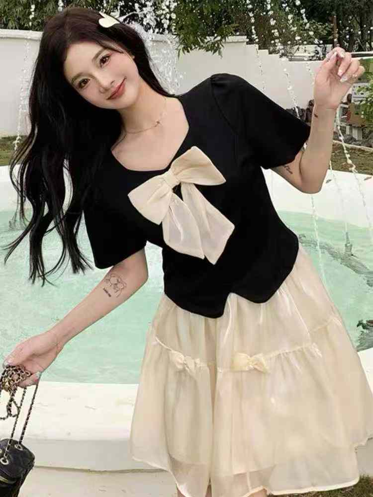 184 Pieces 2026 New French Style Bowknot Slim Fit Summer Short Sleeve T-Shirts Stock Wholesale