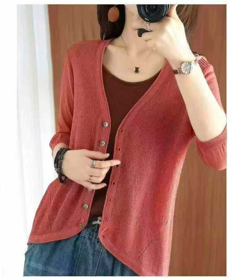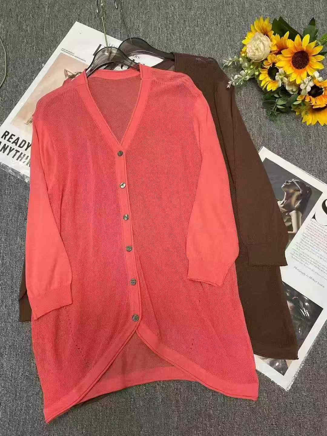 200 Pcs Spring Summer Women’s Light Mature Plain Loose Soft Knit Cardigan Stock Wholesale