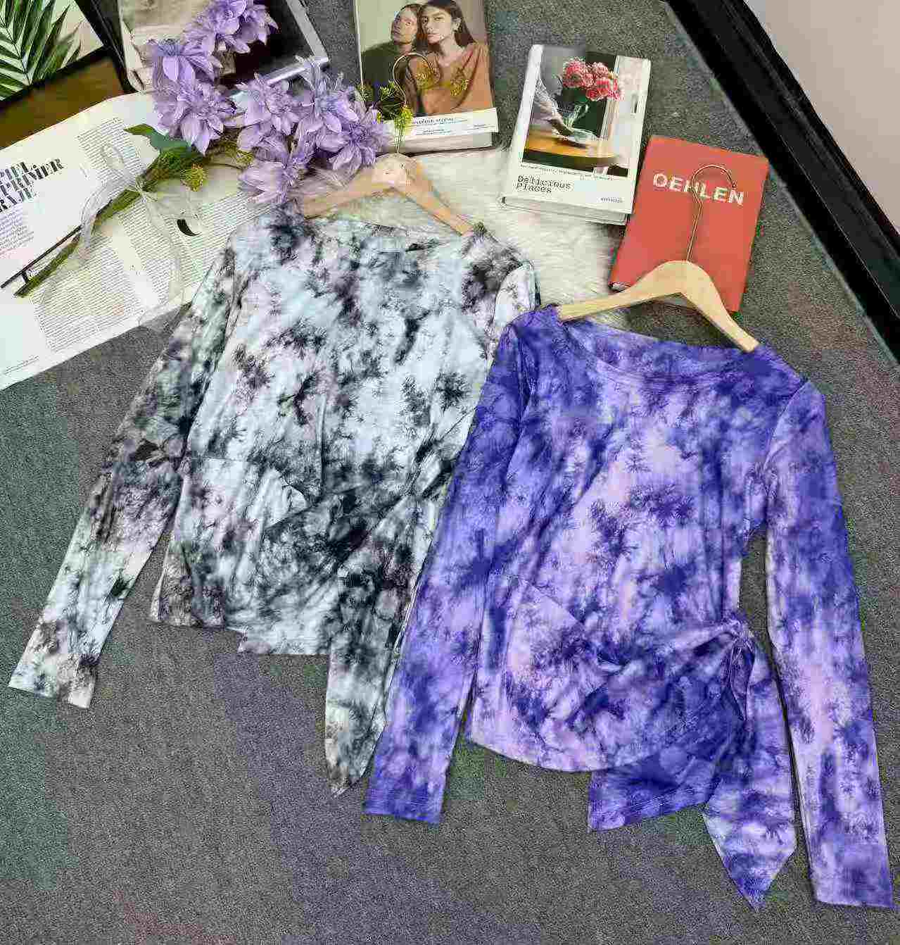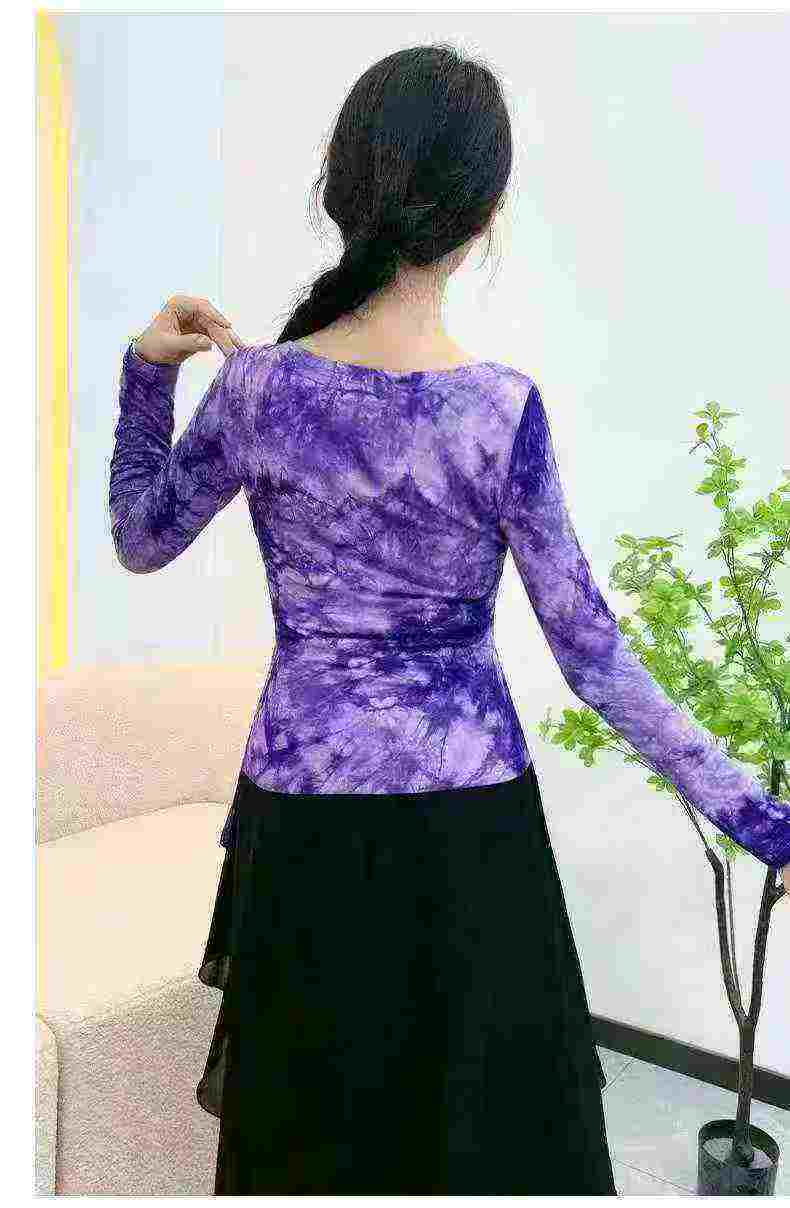 2025 New Tie-dye Waist Cinched Chinese Style Dance Training Long Sleeve Tops, 205 Pieces Bulk Stock