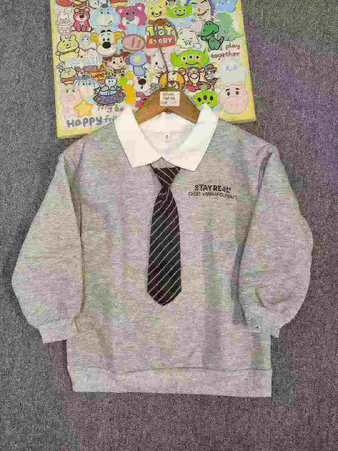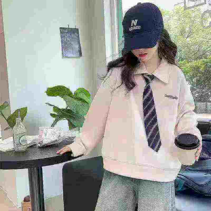 210 Pcs Bulk Stock Fall Winter Big Girls Preppy Style Polo Sweatshirts, Mostly Grey Size 120-170