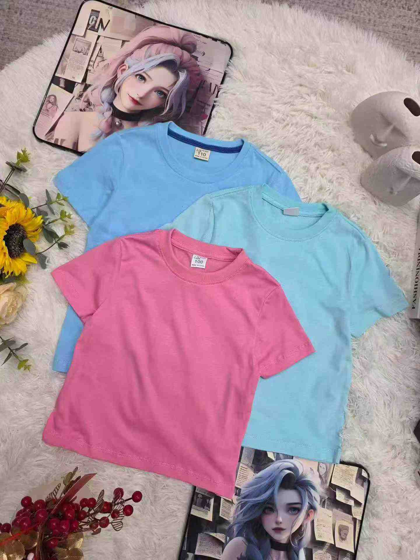 2100 Pieces New Plain Cotton Short Sleeve Kids T-Shirts Bulk Stock Wholesale
