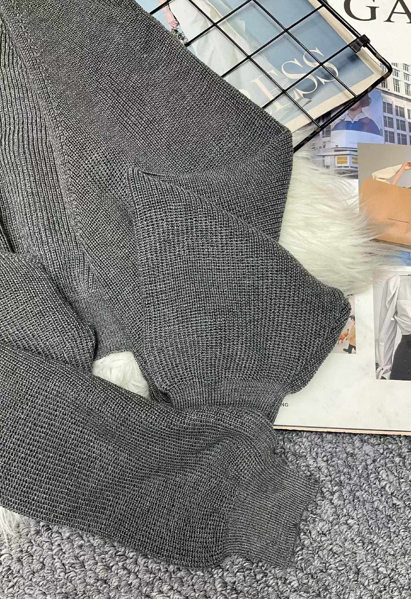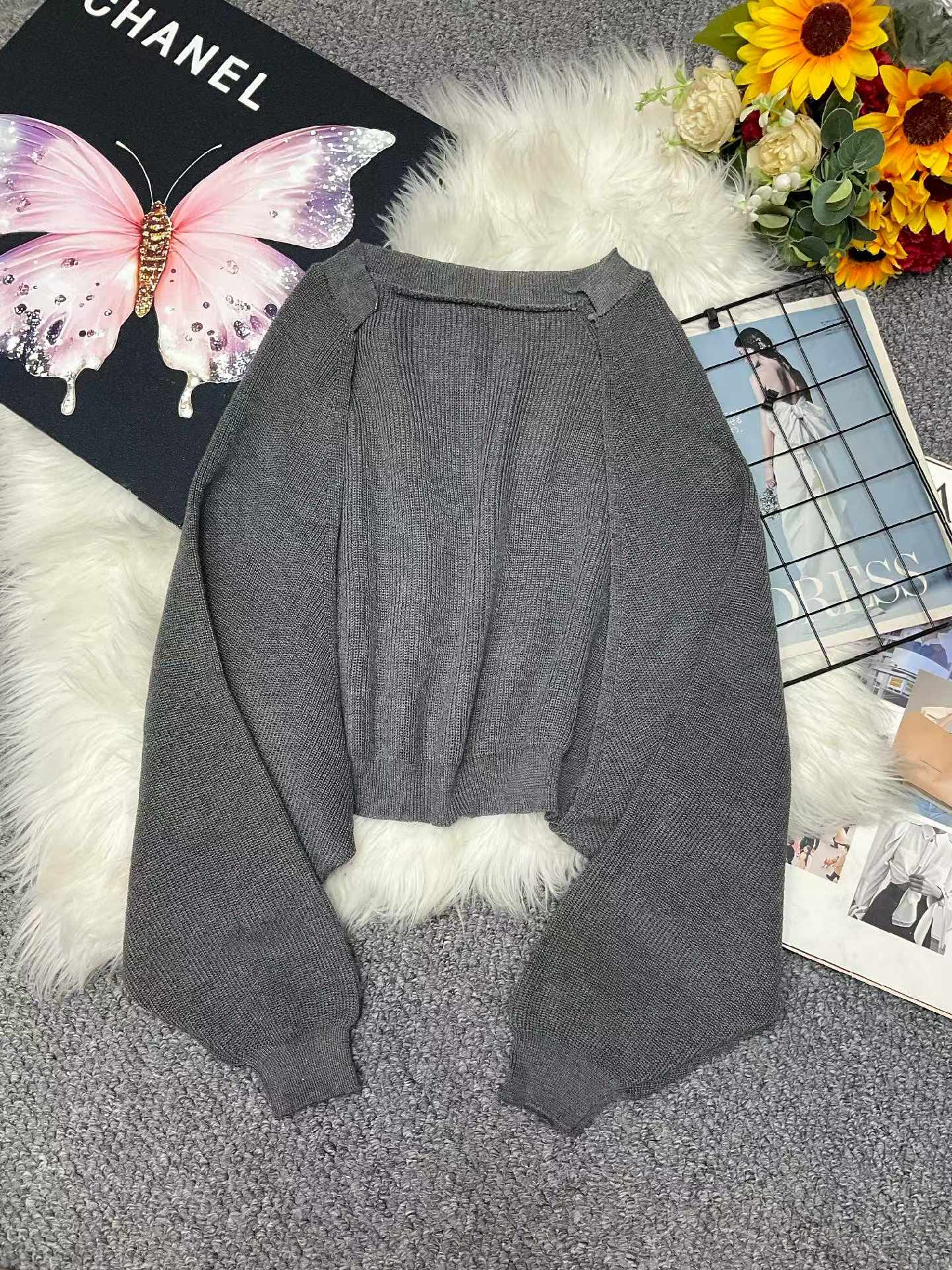 This bulk lot features 280 spring French-style loose shawl cardigans. They have soft, comfortable fabric, one size fits most, and come with individual packaging, available for full clearance wholesale at CNY4.4 per piece.
