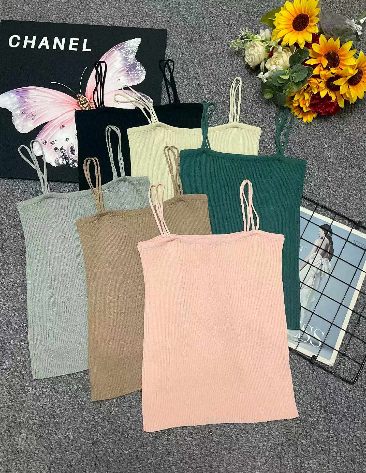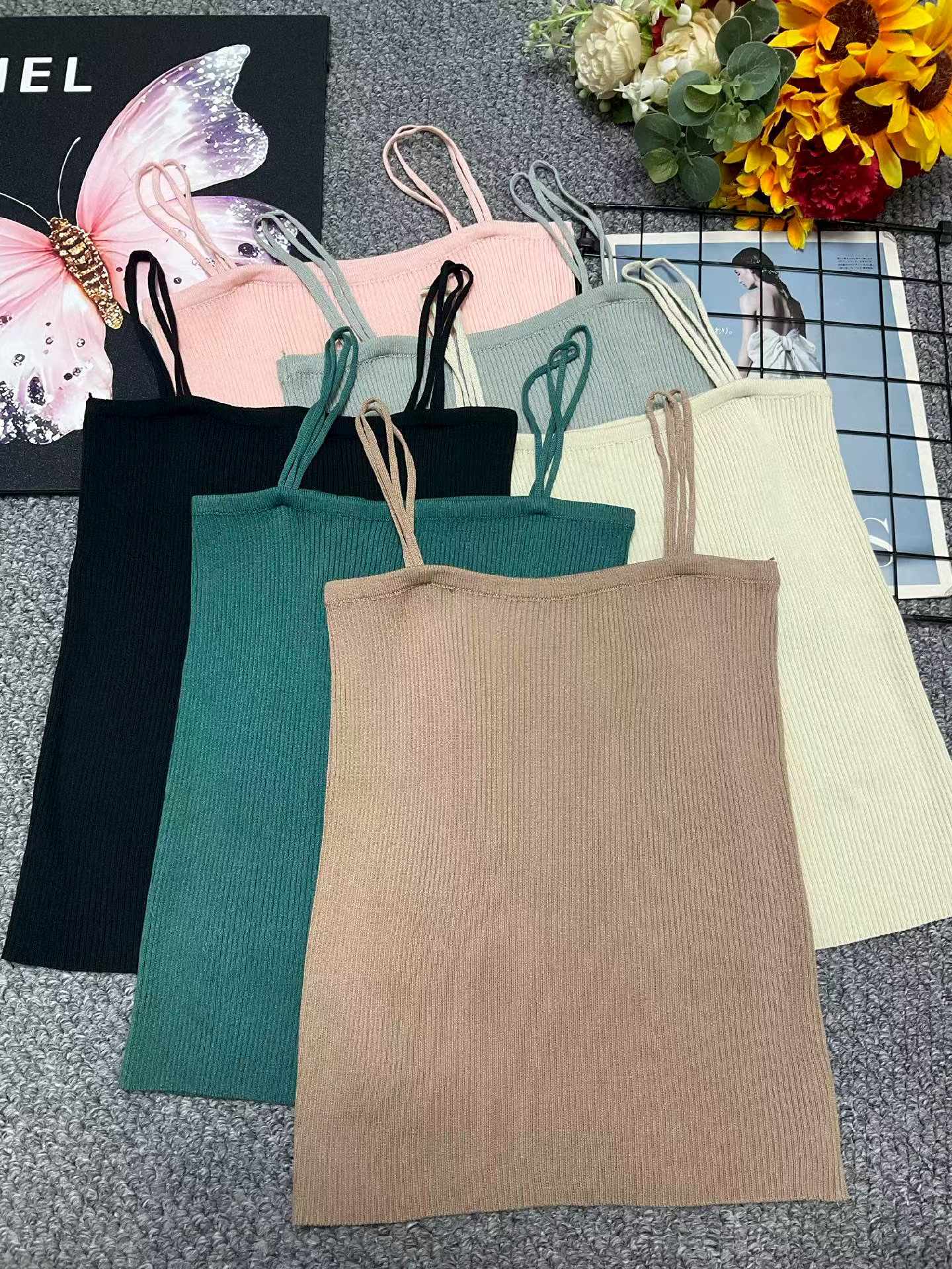 295PCS Summer Plain Stretch Slim-Fit Knitted Halter Tank Tops – Bulk Stock Clothing Wholesale, CNY5.4/PC Full Take