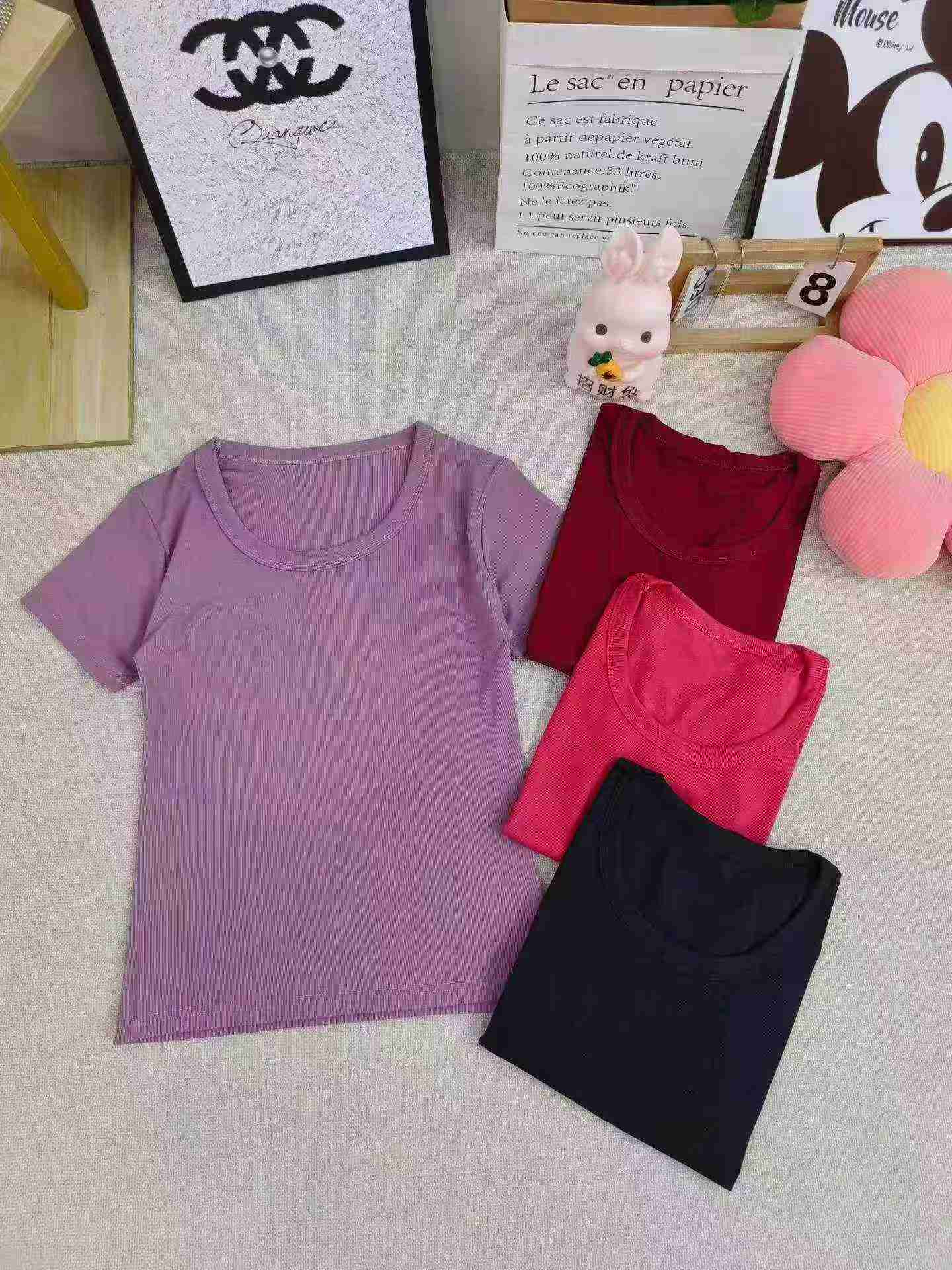 This batch has 300 pieces of women’s sexy ice silk short sleeve tops, they are quality Clothing Stock Lots with 4 colors, individual packing and hangtags.