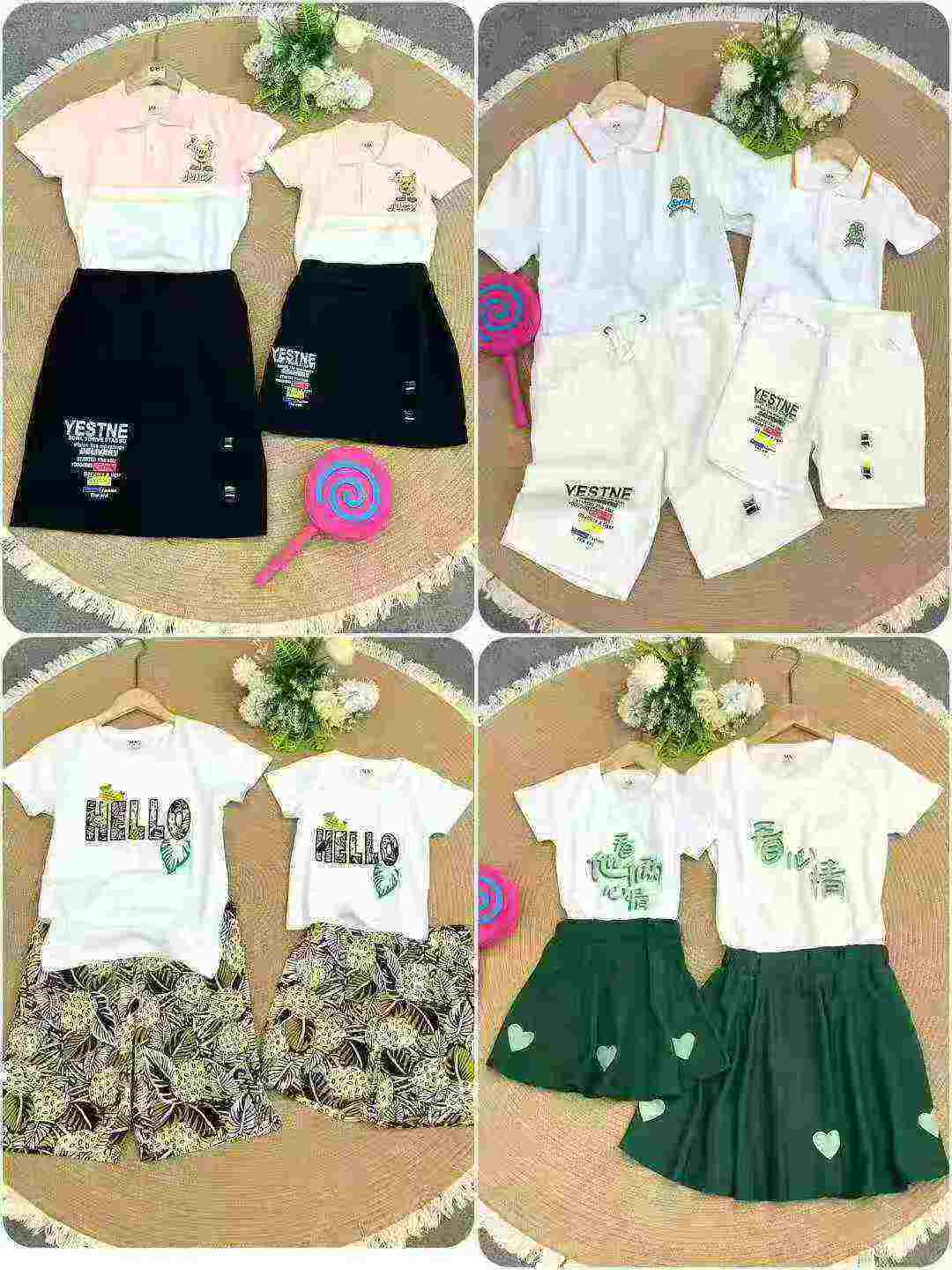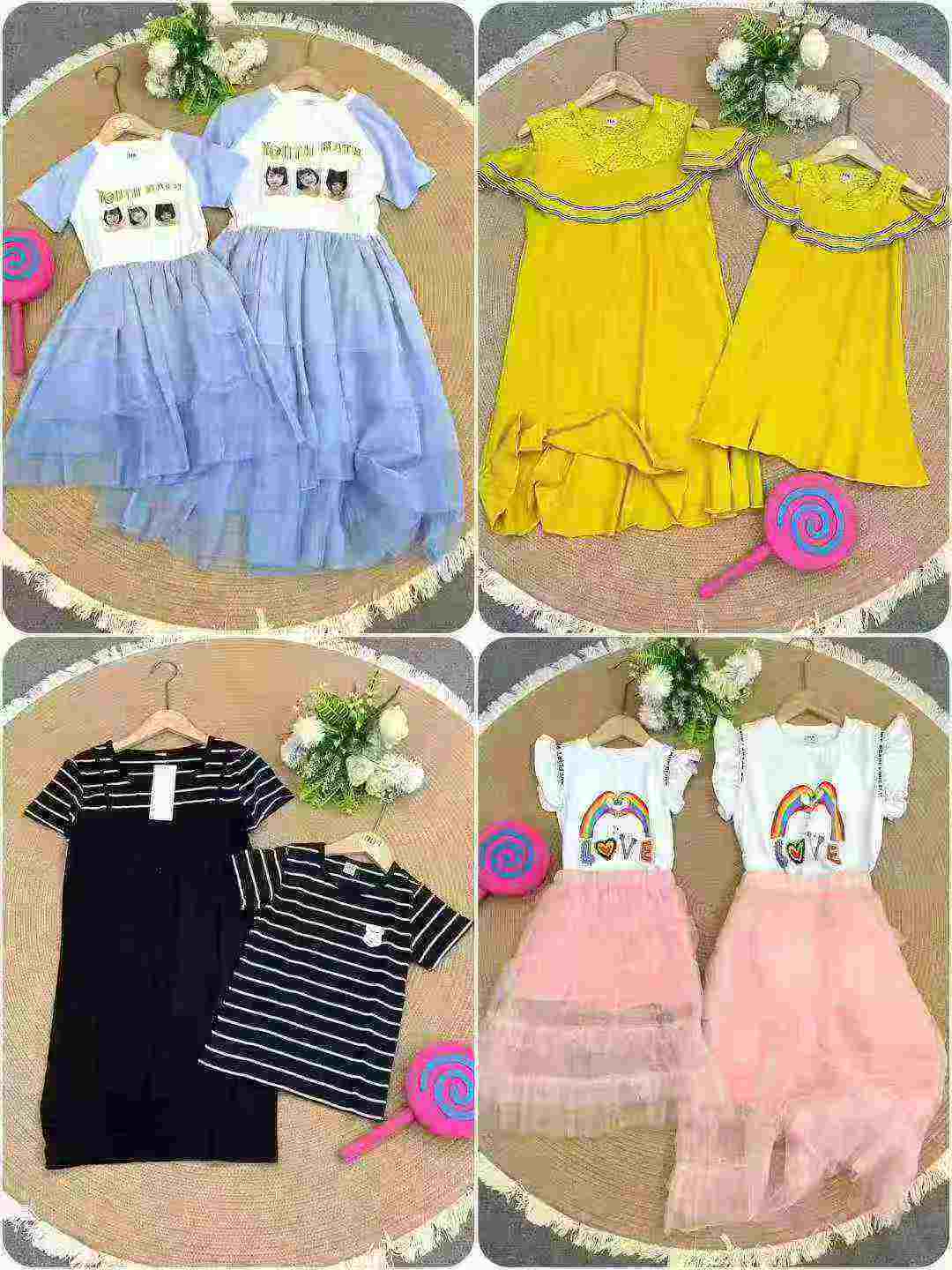 Total 3224 pieces of trendy viral-style family matching parent-child outfits, comfortable fabric, in-store quality, each piece with independent packaging, available for bulk clearance wholesale.