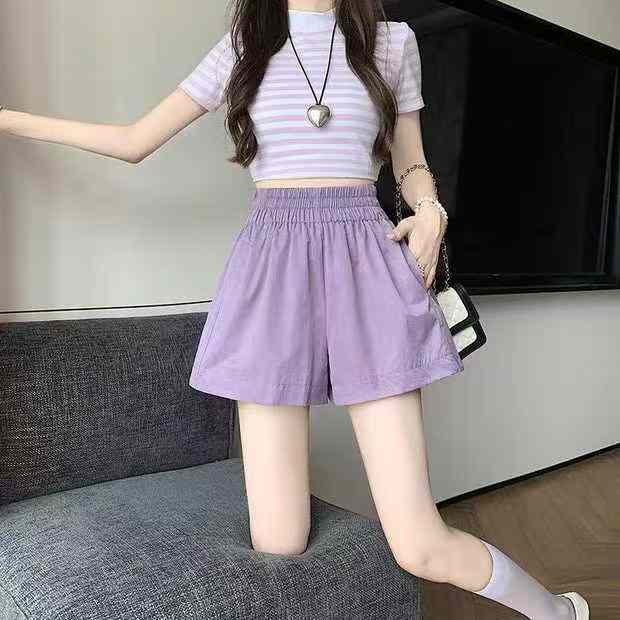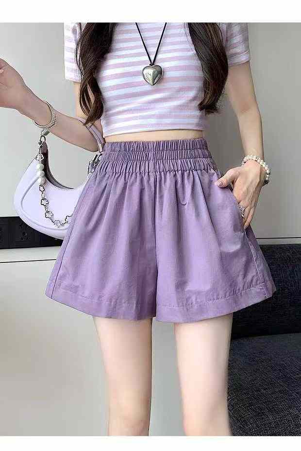 33 PCS Women’s 2026 New Style Purple High Waist Washed Cotton Loose Baggy Summer Shorts Bulk Stock