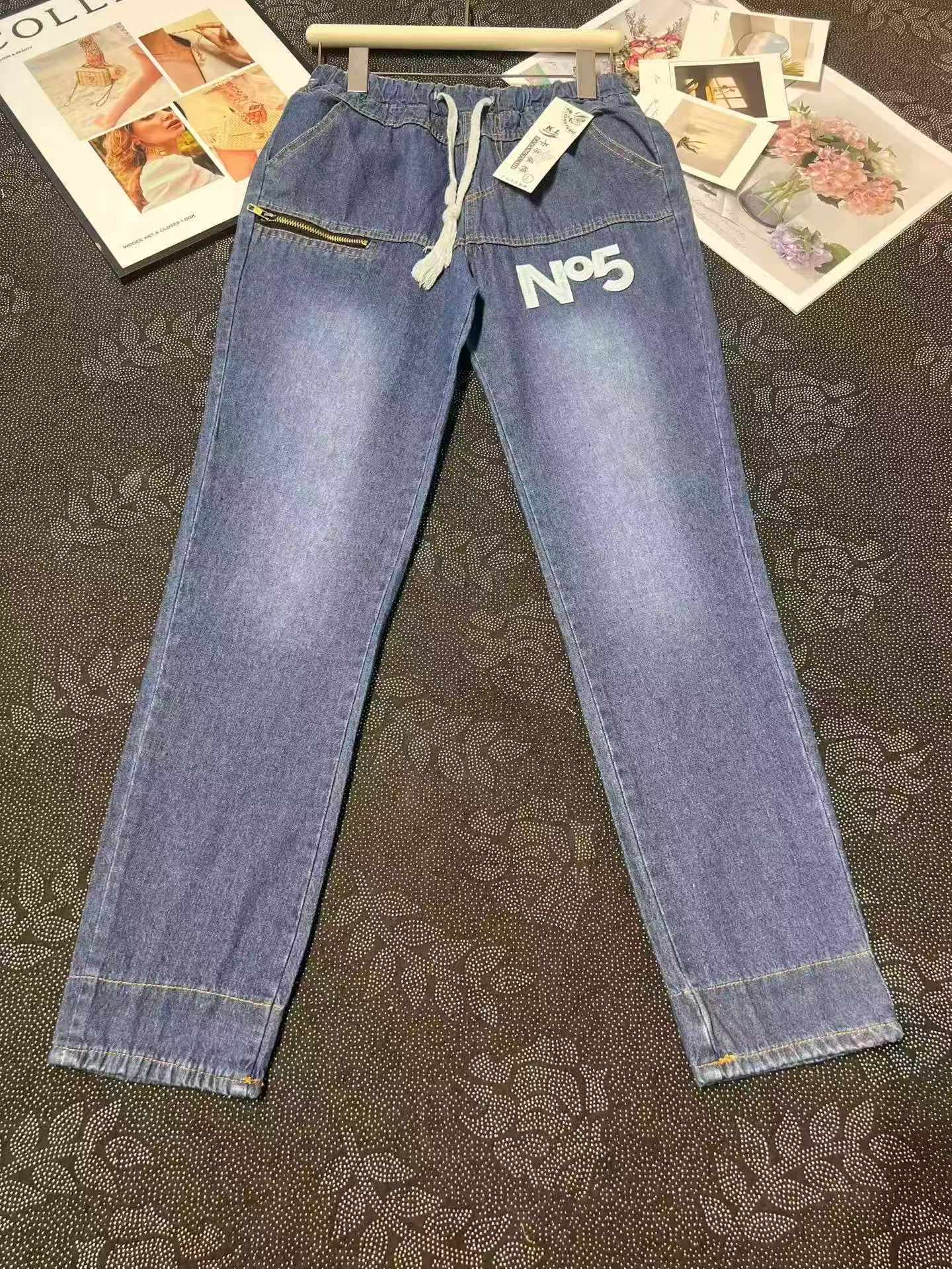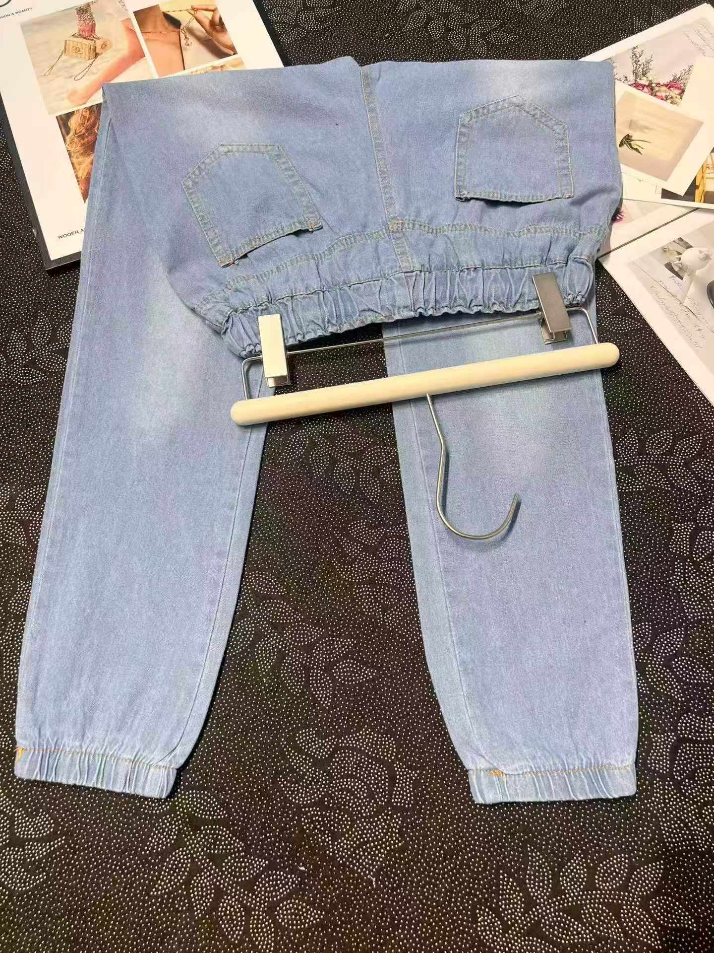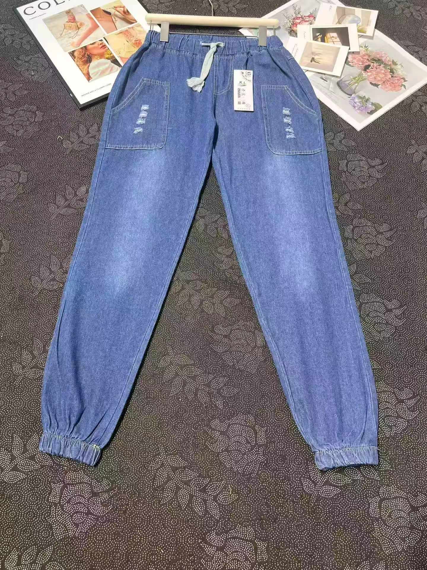 334 Pcs Women’s Elastic Waist Tapered Straight Loose Jeans Spring Autumn Thin Casual Denim Stock Wholesale