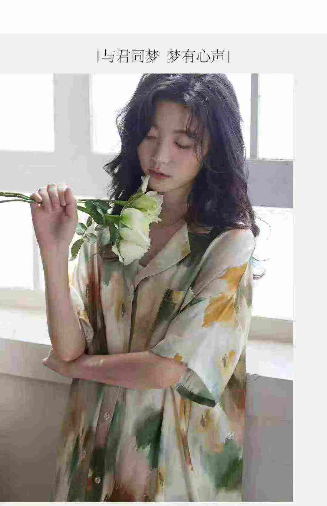 This stock lot contains 364 silk-like tie-dye nightdresses, all in one size with individual packaging, available for wholesale export at 7.4 CNY per piece.