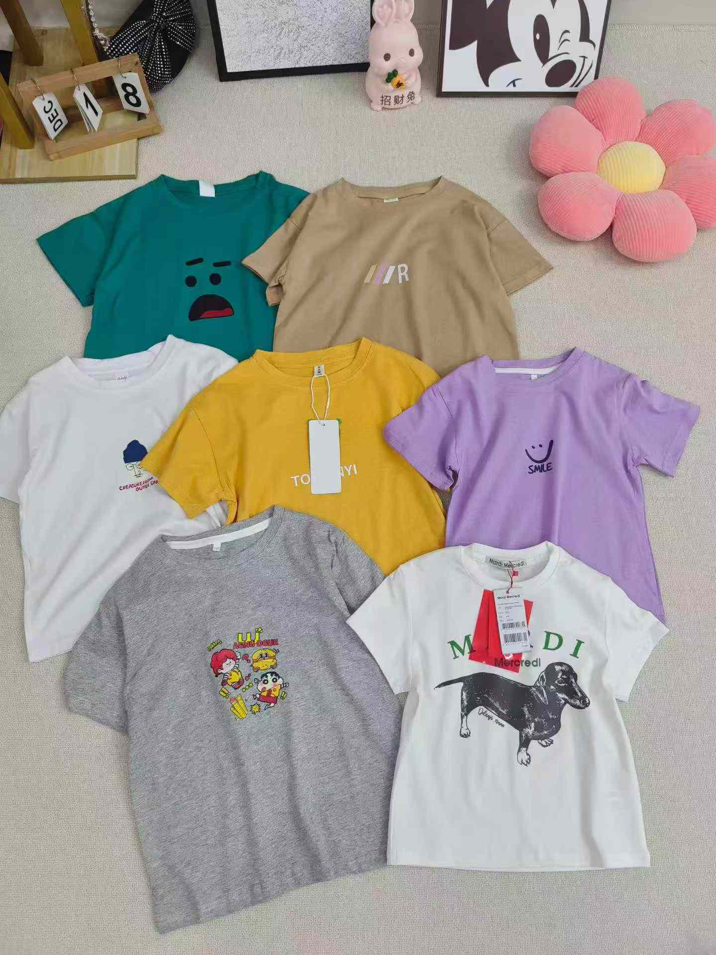 This batch has 4100 pieces of kids cotton short sleeve t-shirts with individual packaging, which are quality Clothing Stock Lots for bulk wholesale.