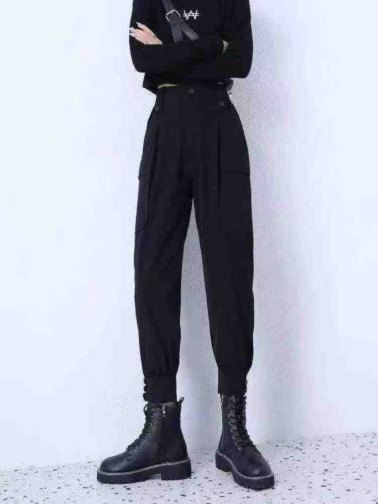 445pcs High Quality European Style Elastic Cuffed Cargo Pants | Bulk Stock Lot | Size M to XXL, Black, Stretch Fabric, Individual Packaging | 15.3 CNY/Piece