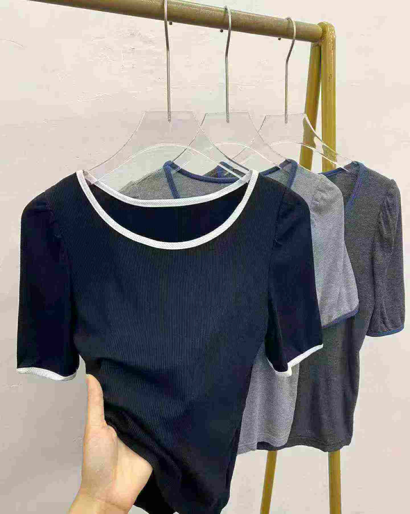 495 Pieces Simple Solid Color Versatile Short Sleeve T-Shirts Bulk Stock Wholesale