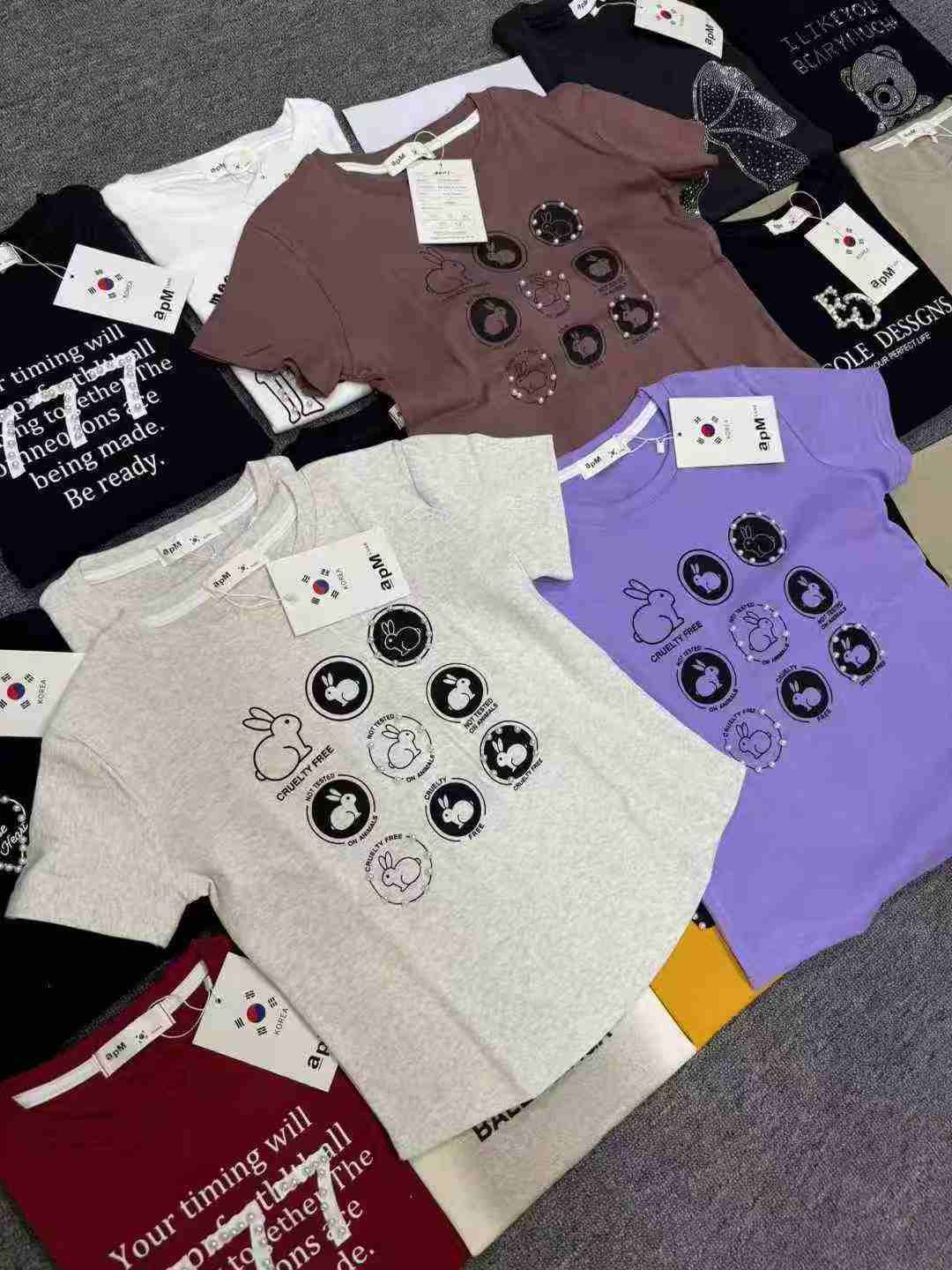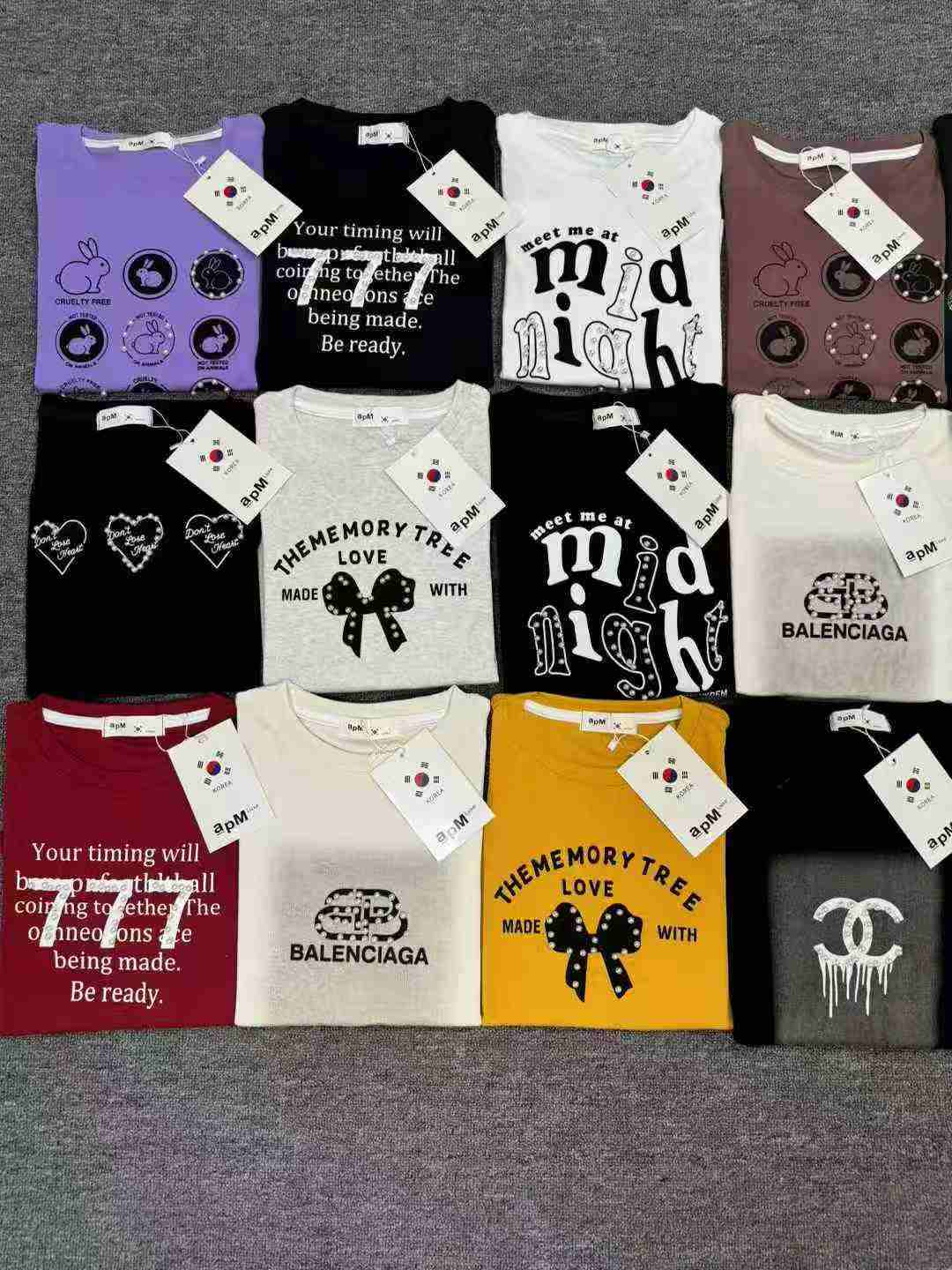 5000pcs Heavy Beaded Trendy Cotton T-Shirts – Chinese Clothing Stock Lots, 12.3 CNY/Piece Full Clearance, Assorted Designs & Colors, 220G Cotton Fabric