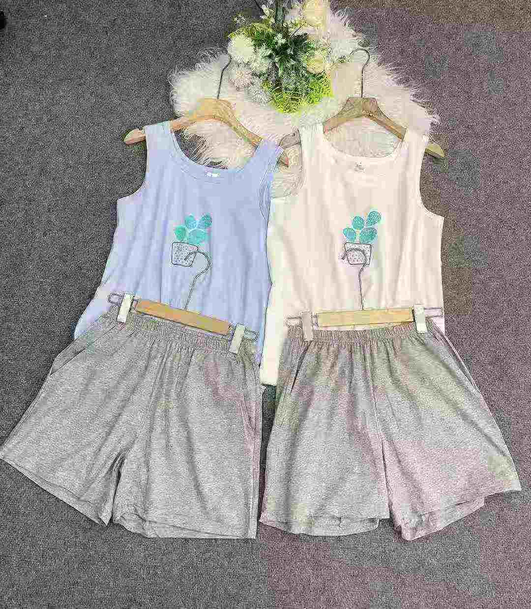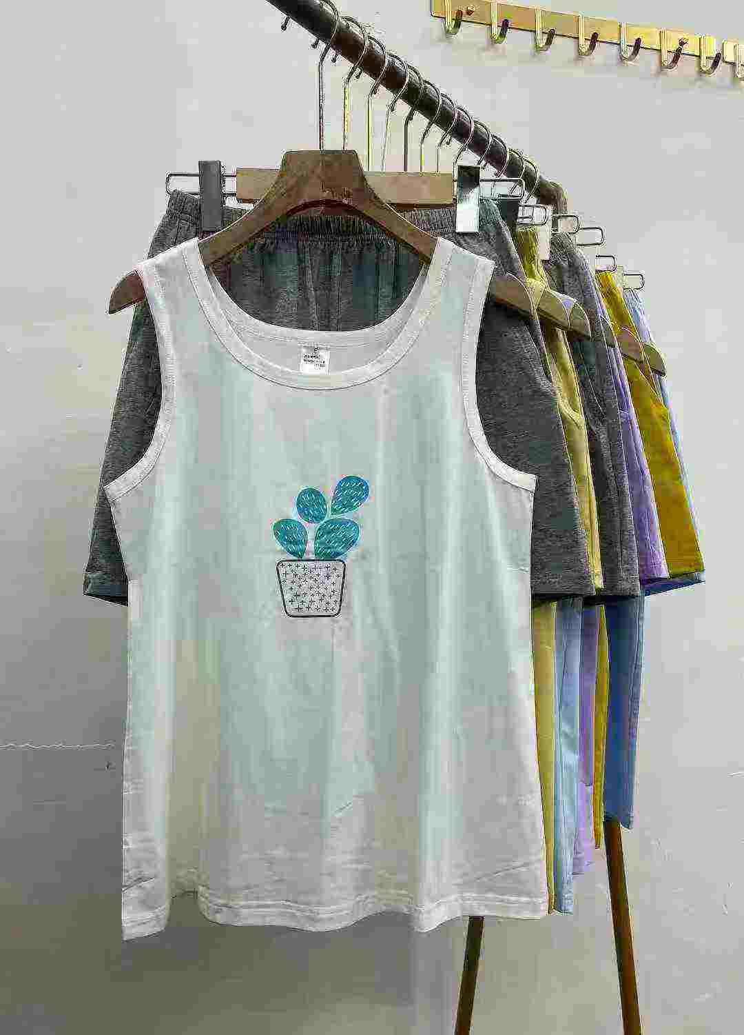 506 Sets Compact Cotton Printed Partial Embroidered Casual Vest Loungewear Sets, One Size Fits Up to 60kg