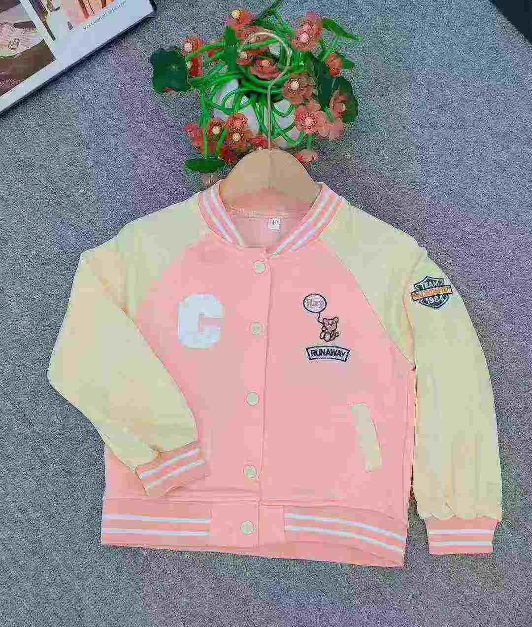 This is quality Clothing Stock Lots including 532 pieces of mid kids fleece baseball jackets, 2 colors, size 100-130 with individual packing.