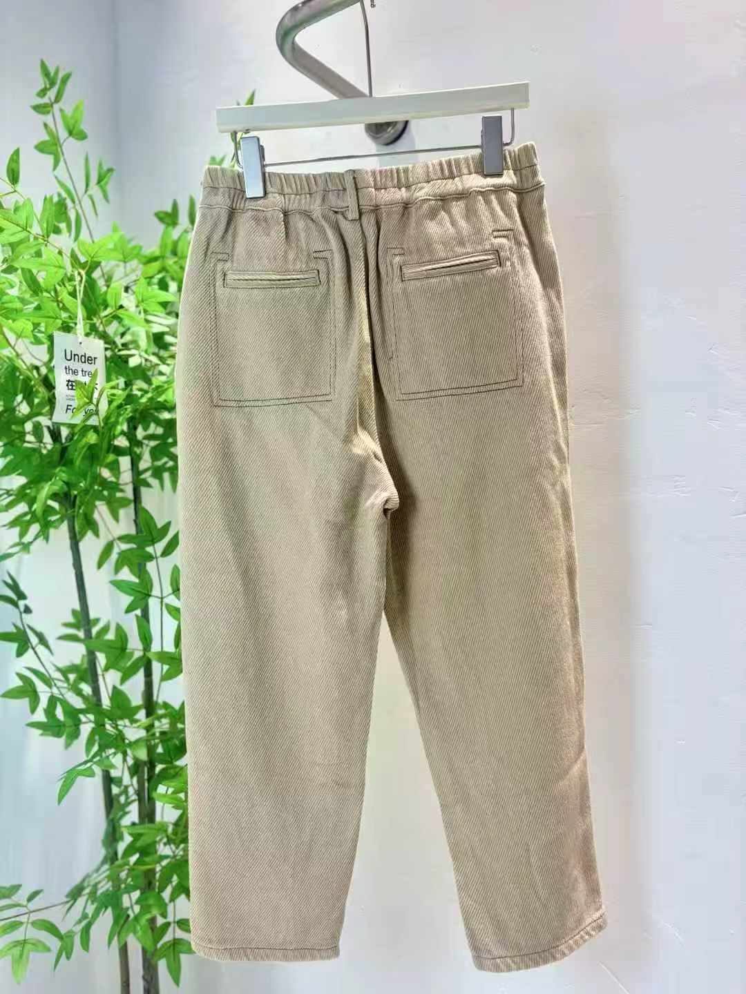 We have 560 pieces of casual jeans in stock, available in sizes from S to 2XL. Made of pure cotton, this collection features Korean retro relaxed style, versatile khaki color, with individual packaging and hang tag.