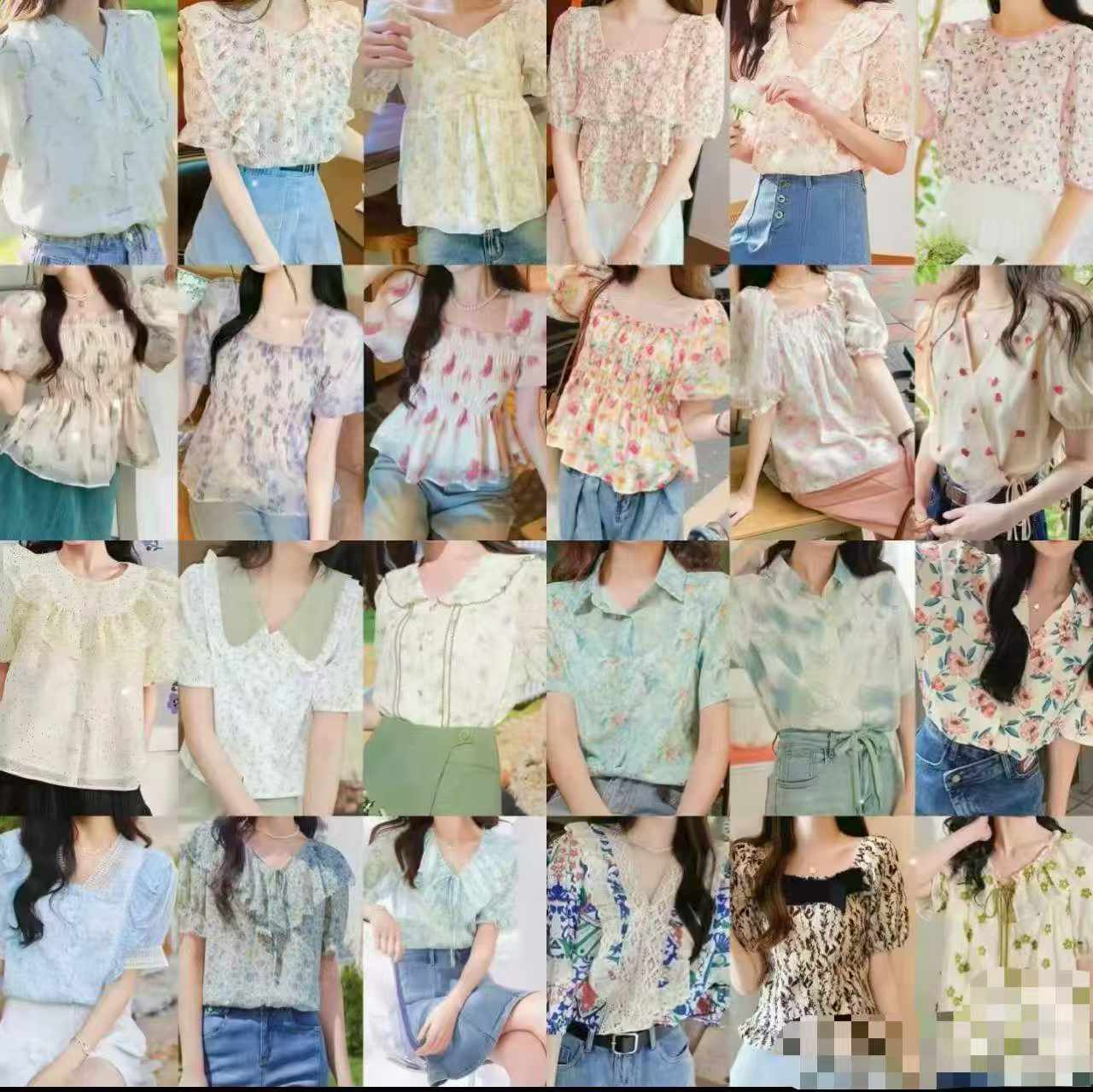 We have 6000 pieces of mixed-style chiffon blouses in stock, this is high-quality ready-to-ship Clothing Stock Lots for bulk purchase.