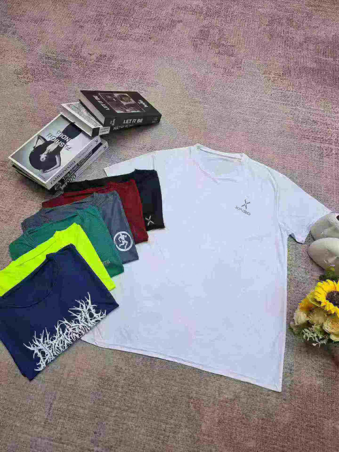 This batch includes 60000 pieces of sports T-shirts in plain and printed styles, which are qualified Clothing Stock Lots for bulk wholesale.