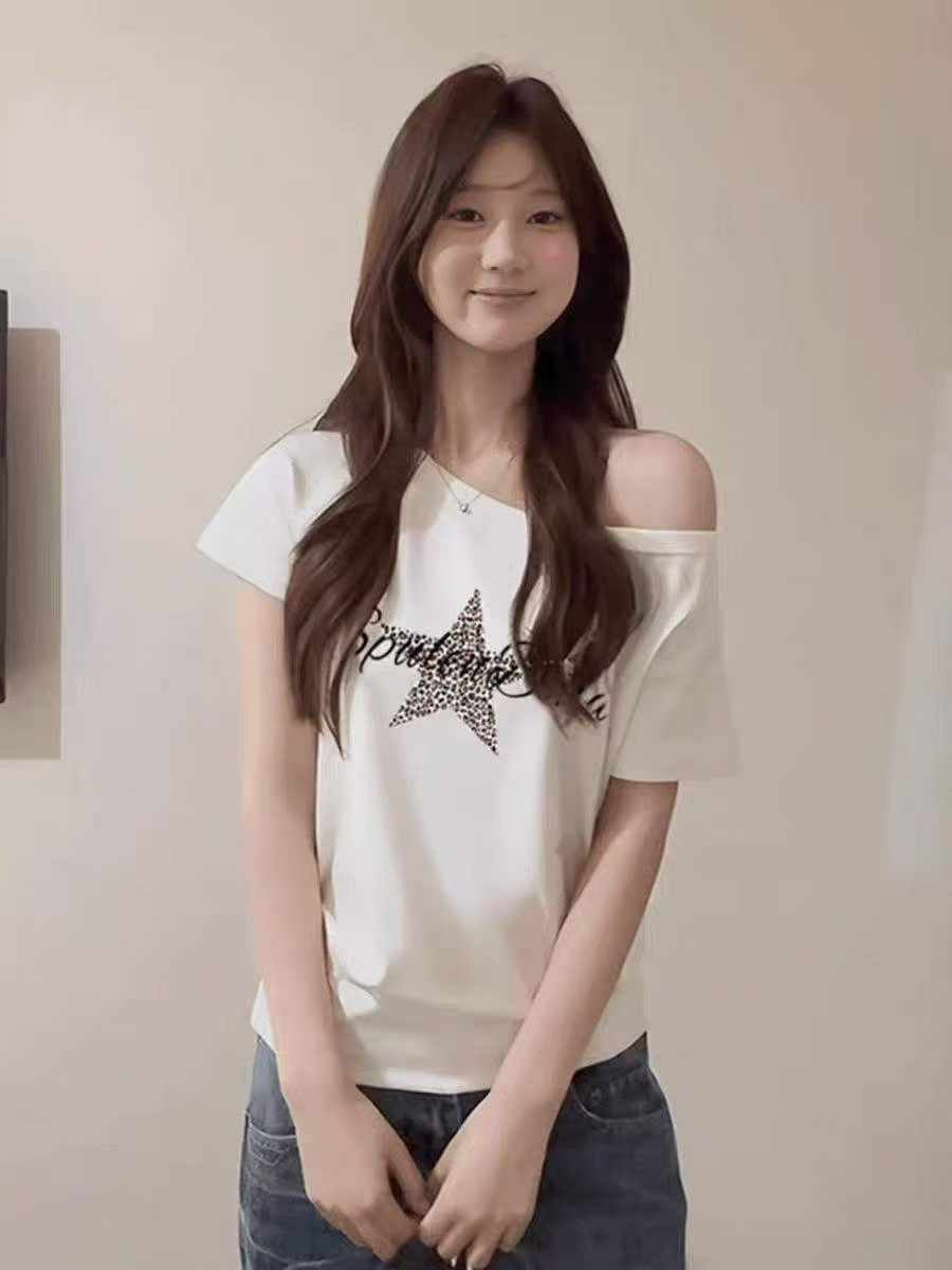 650 Pcs Summer Trendy Retro One-shoulder Strap Printed T-shirts Stock Wholesale Export
