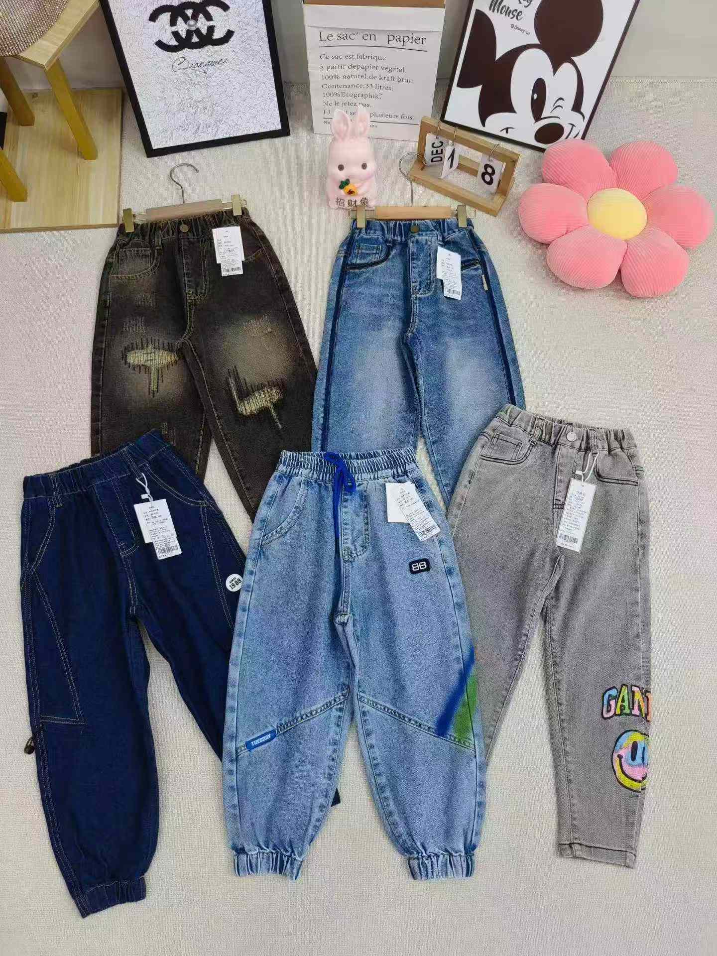We have 7200 pieces of washed cotton kids denim jeans in our Clothing Stock Lots, with tags and individual packing, most are full sizes.