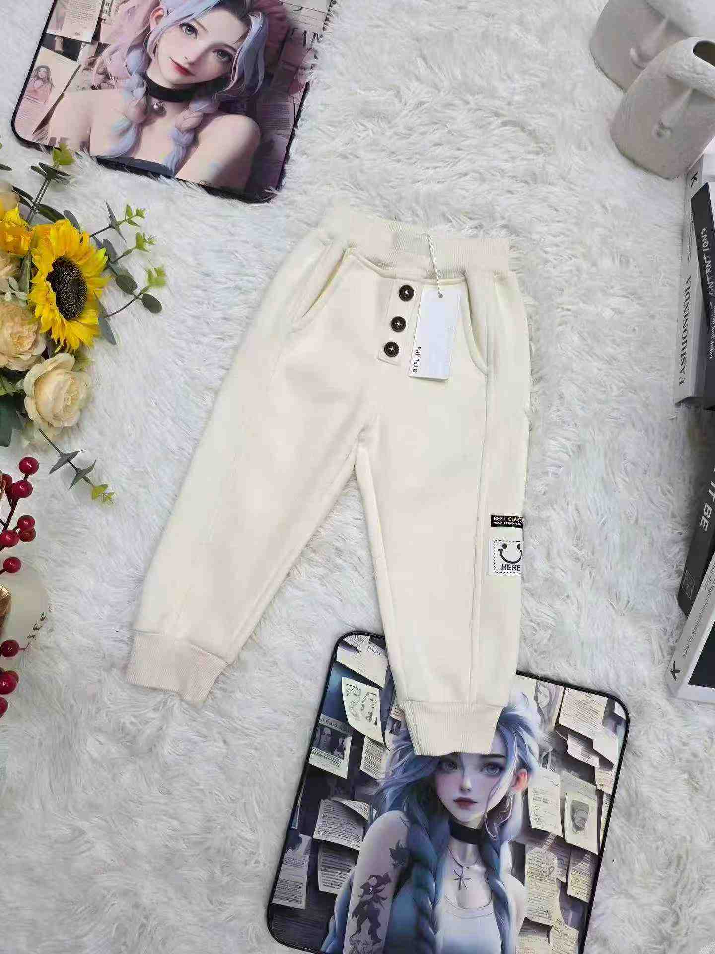 A clothing stock lot of 800 kids’ cotton sweatpants in sizes 80-160. These are new factory goods with quality suitable for physical stores.