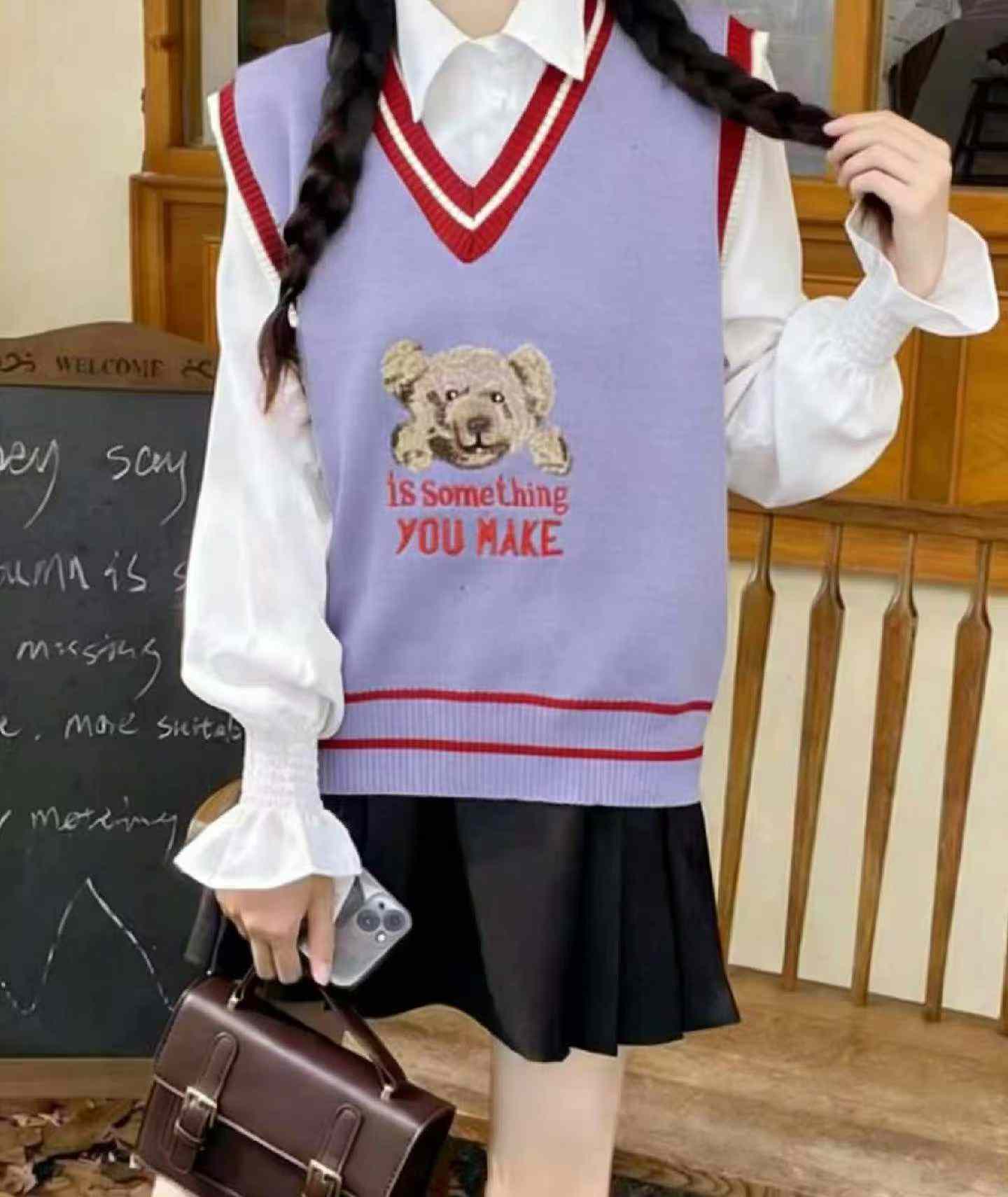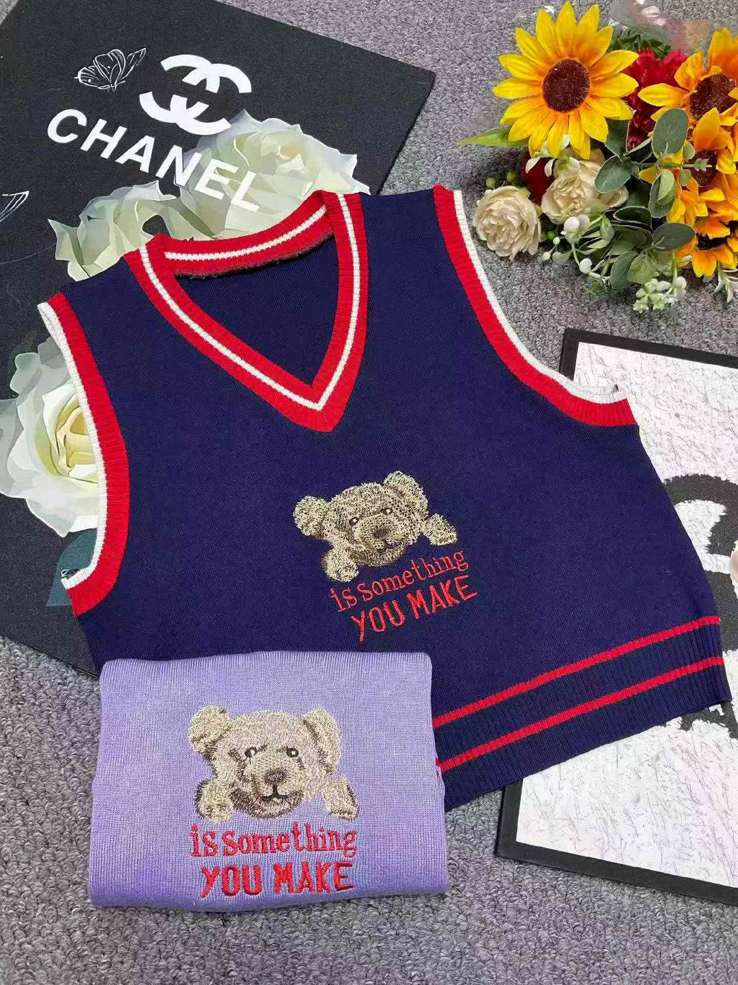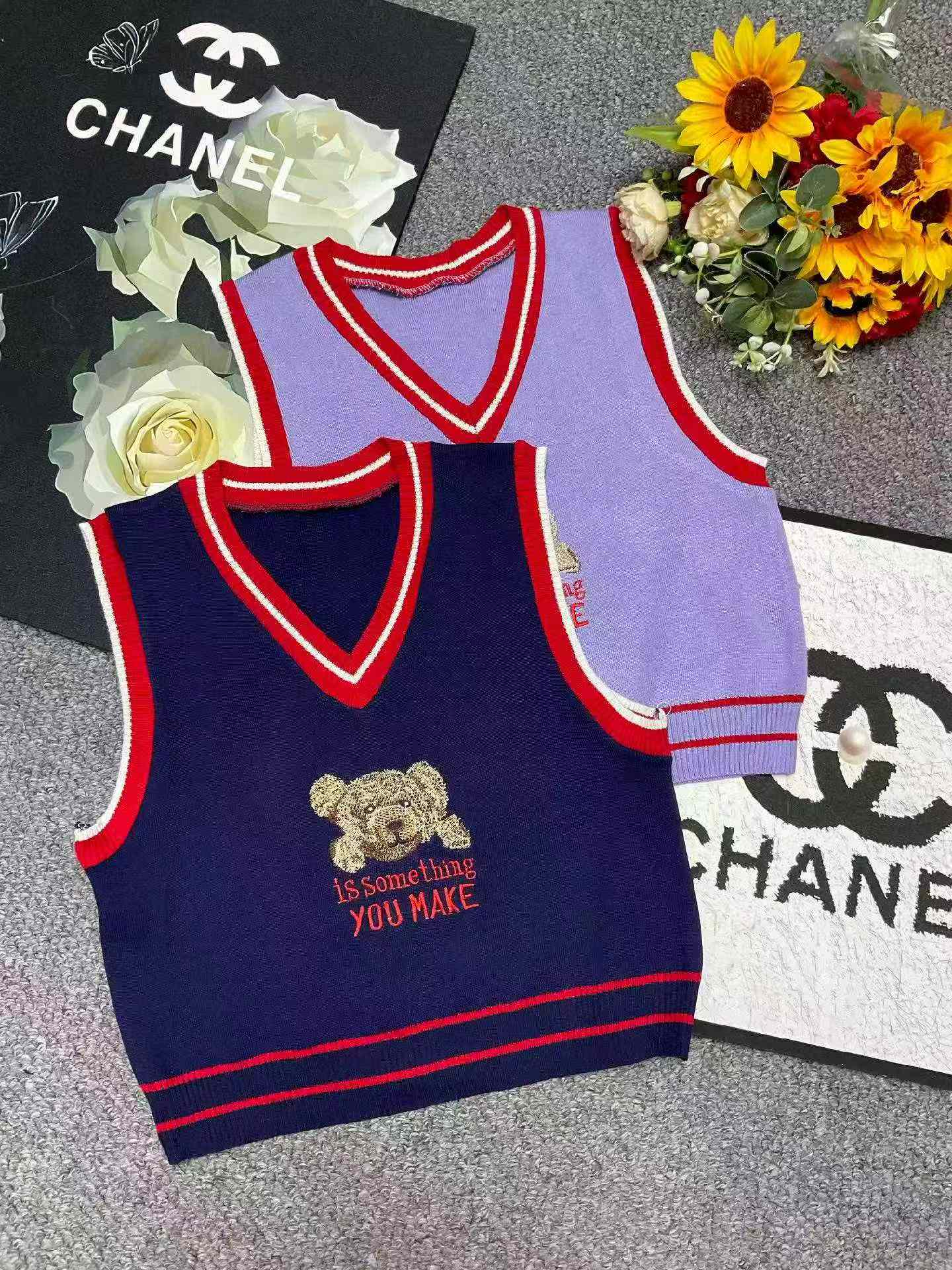 862 Pcs Spring Korean College Style Cartoon Bear Jacquard V-neck Pullover Sweater Vest Bulk Wholesale