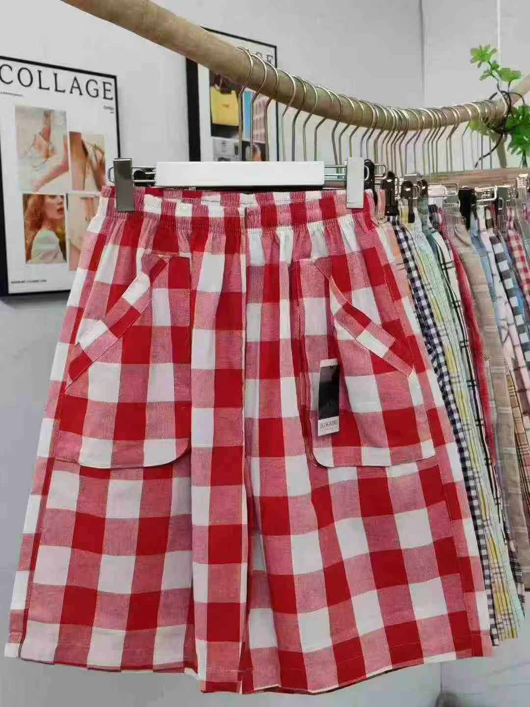 About 5070 Pcs Pure Cotton Plaid Loose Casual Five-inch Beach Shorts Clearance Stock