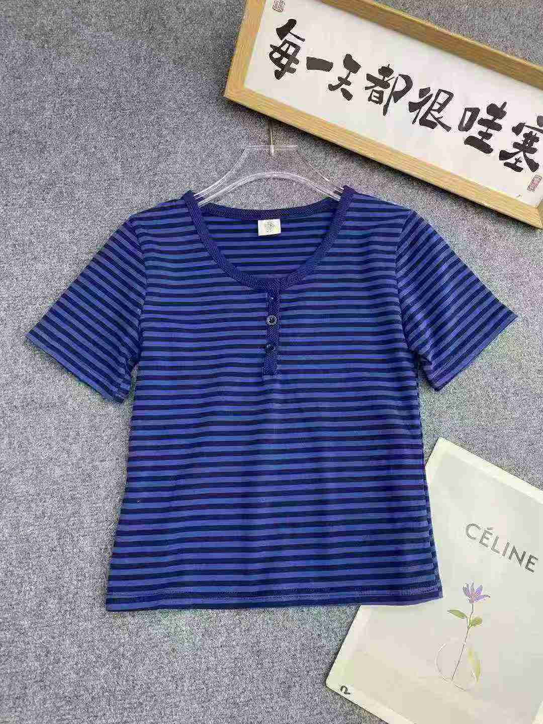 American Style Cotton Striped Regular Shoulder Short Sleeve T-Shirts Bulk Stock Wholesale For Export