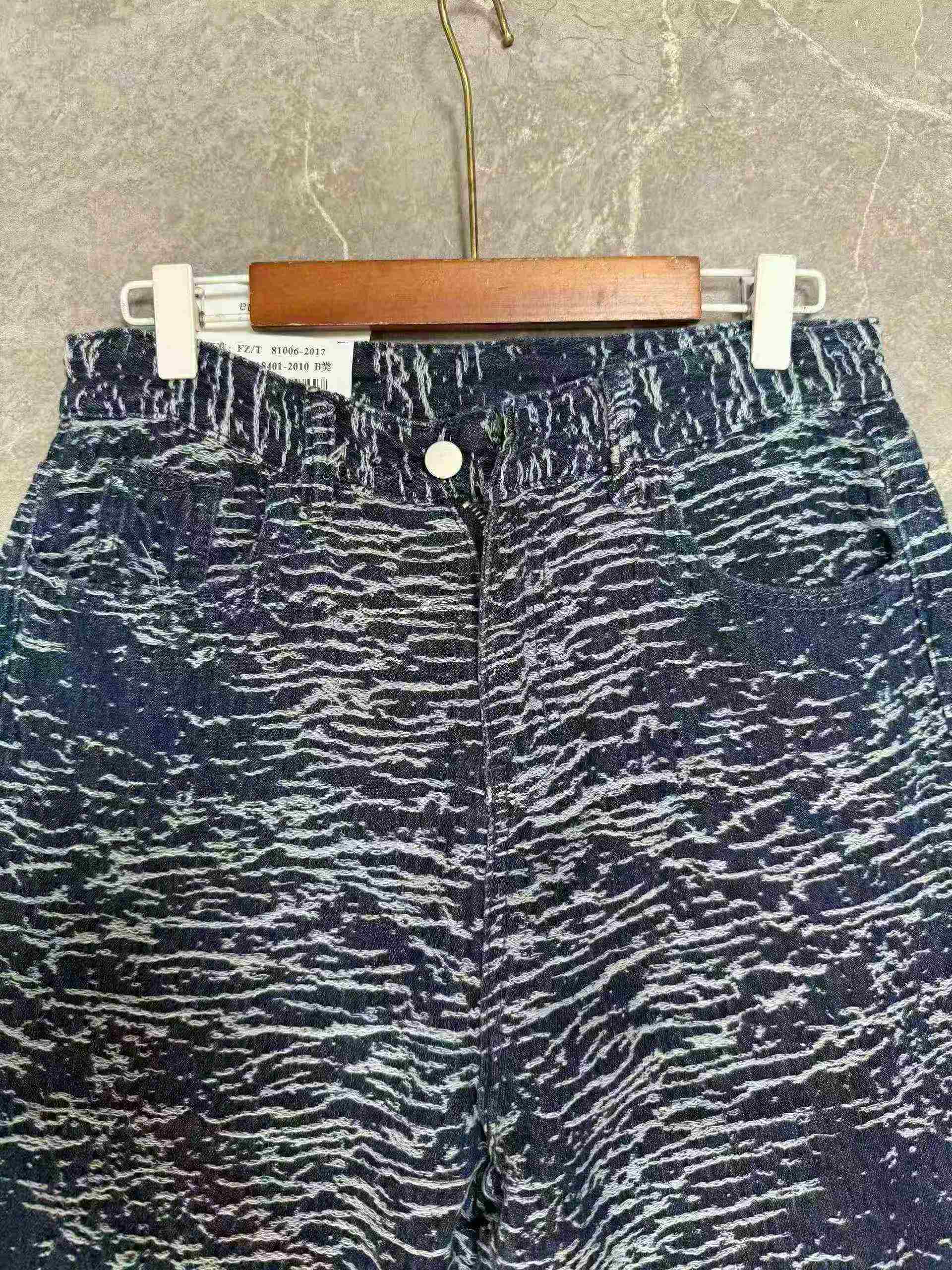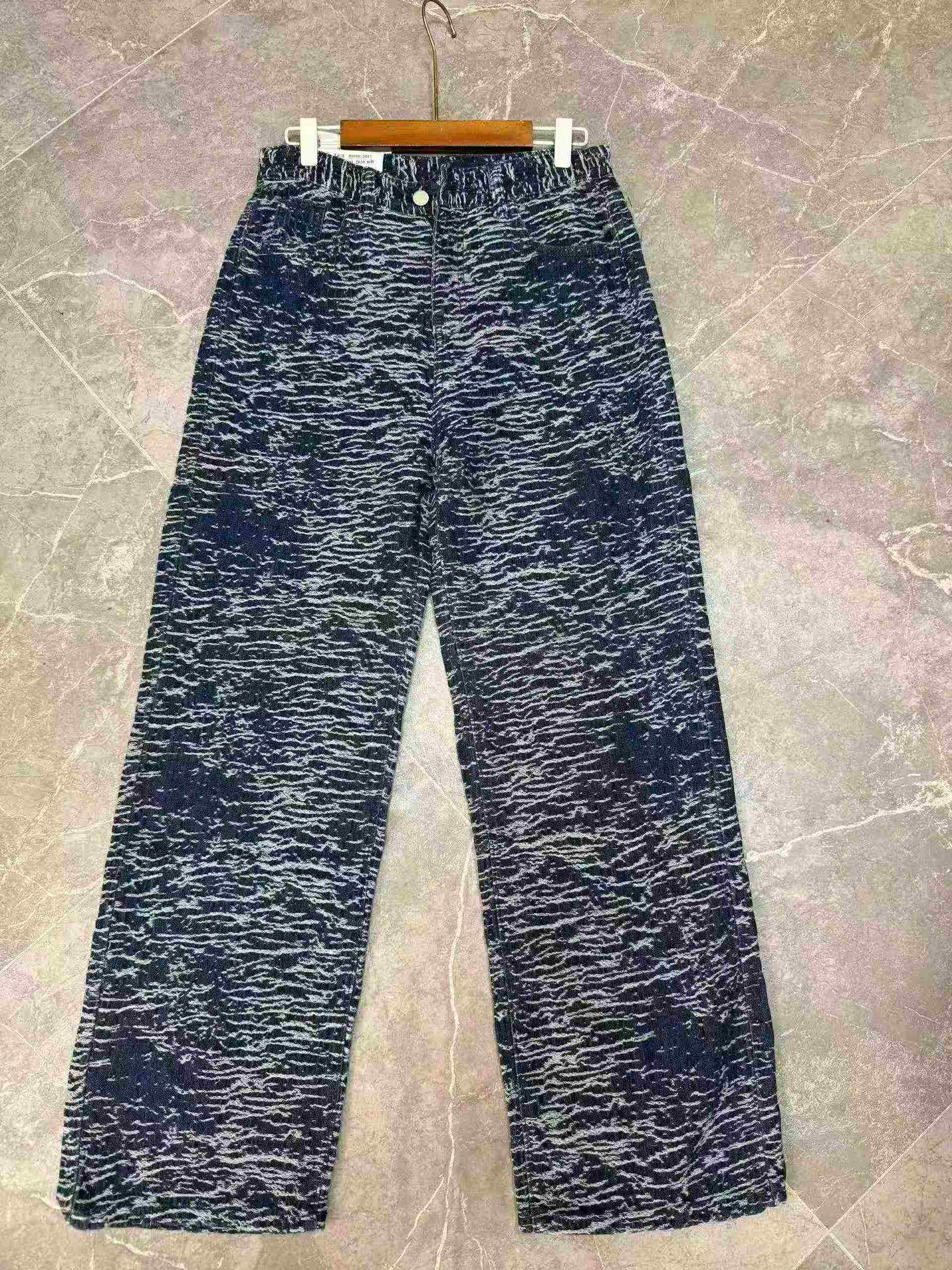 Artistic Jacquard High Waist Wide Leg Water Ripple Jeans, Loose Fit, 2 Colors, S-2XL, Around 480 Pieces