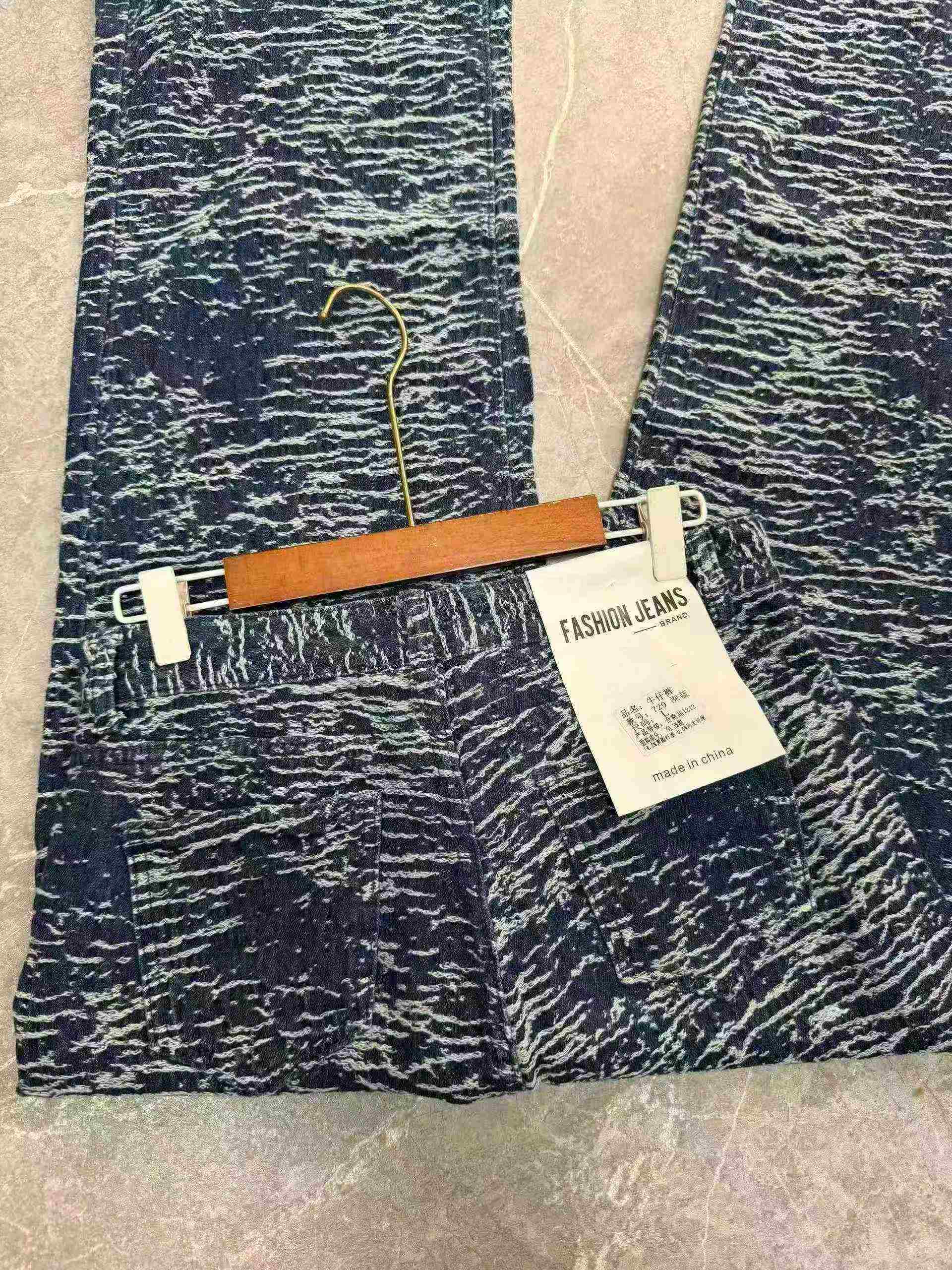 These fashionable loose water ripple jacquard wide leg jeans are part of our Clothing Stock Lots, available in 2 colors, totally around 480 pieces in stock.