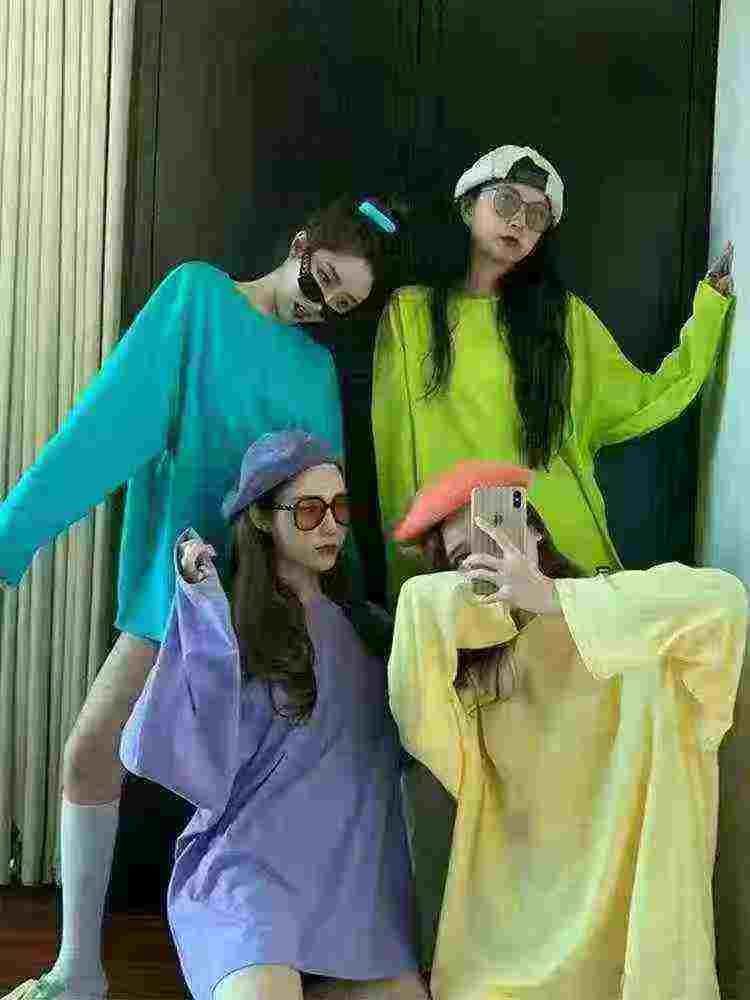 Autumn New Korean Style Loose Pure Cotton Long Sleeve Matching Bestie T-shirts 500PCS Bulk Clearance