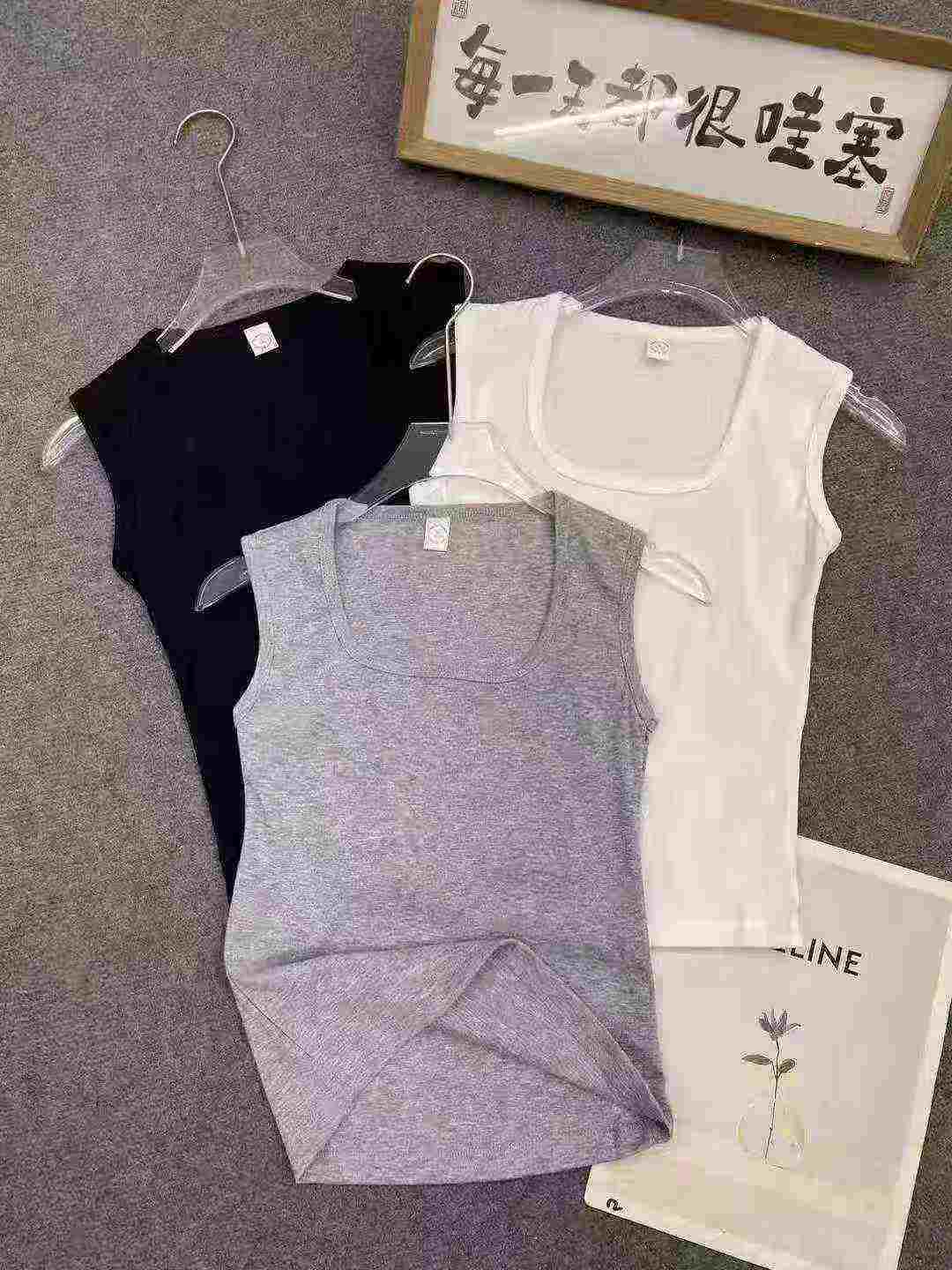 We have 2073 pieces of American style wide shoulder tank tops in stock. Sizes range from S to XL, size S fits 90-110 jin. The fabric is soft, comfortable and highly elastic, each piece comes with independent packaging.