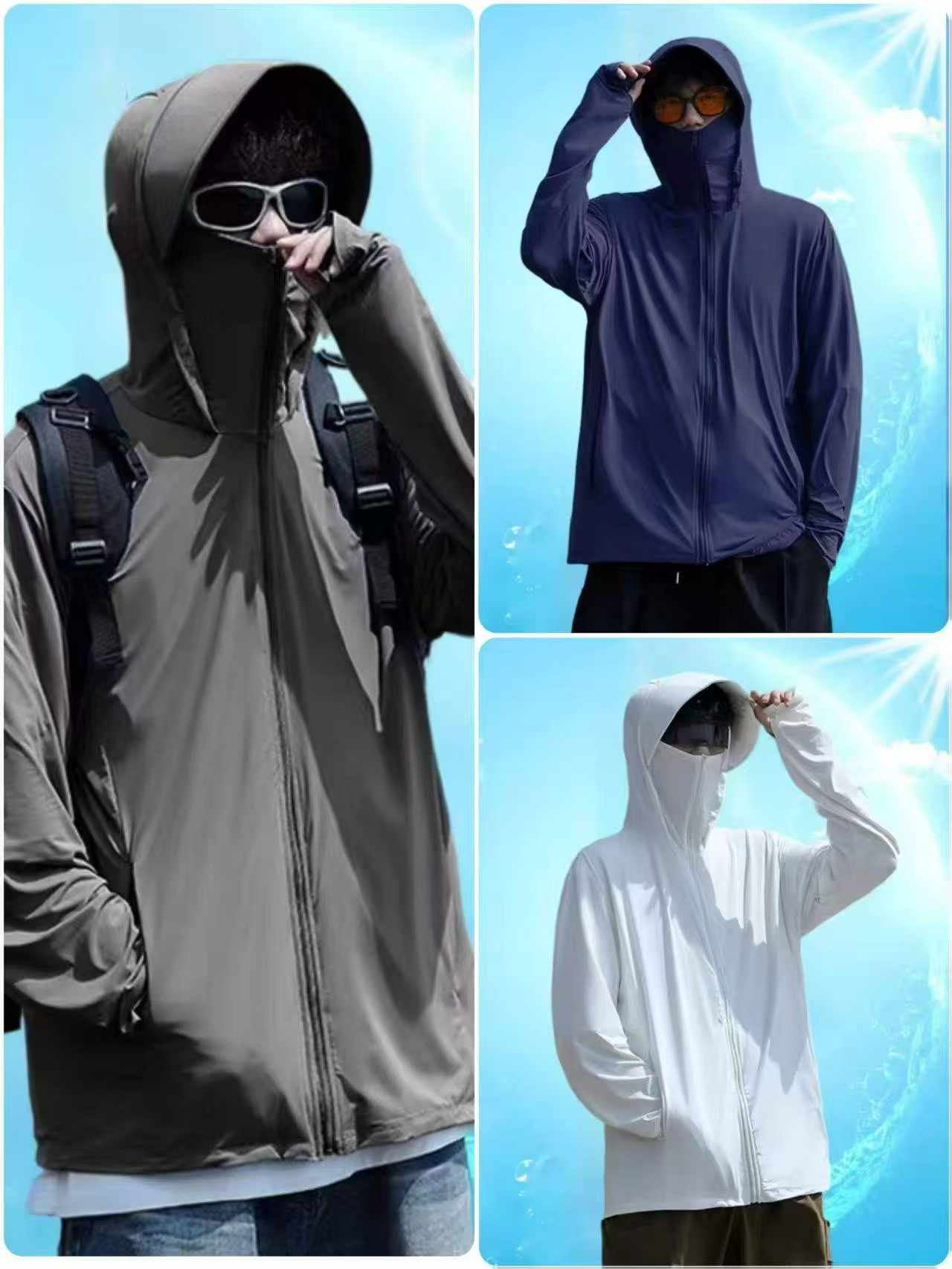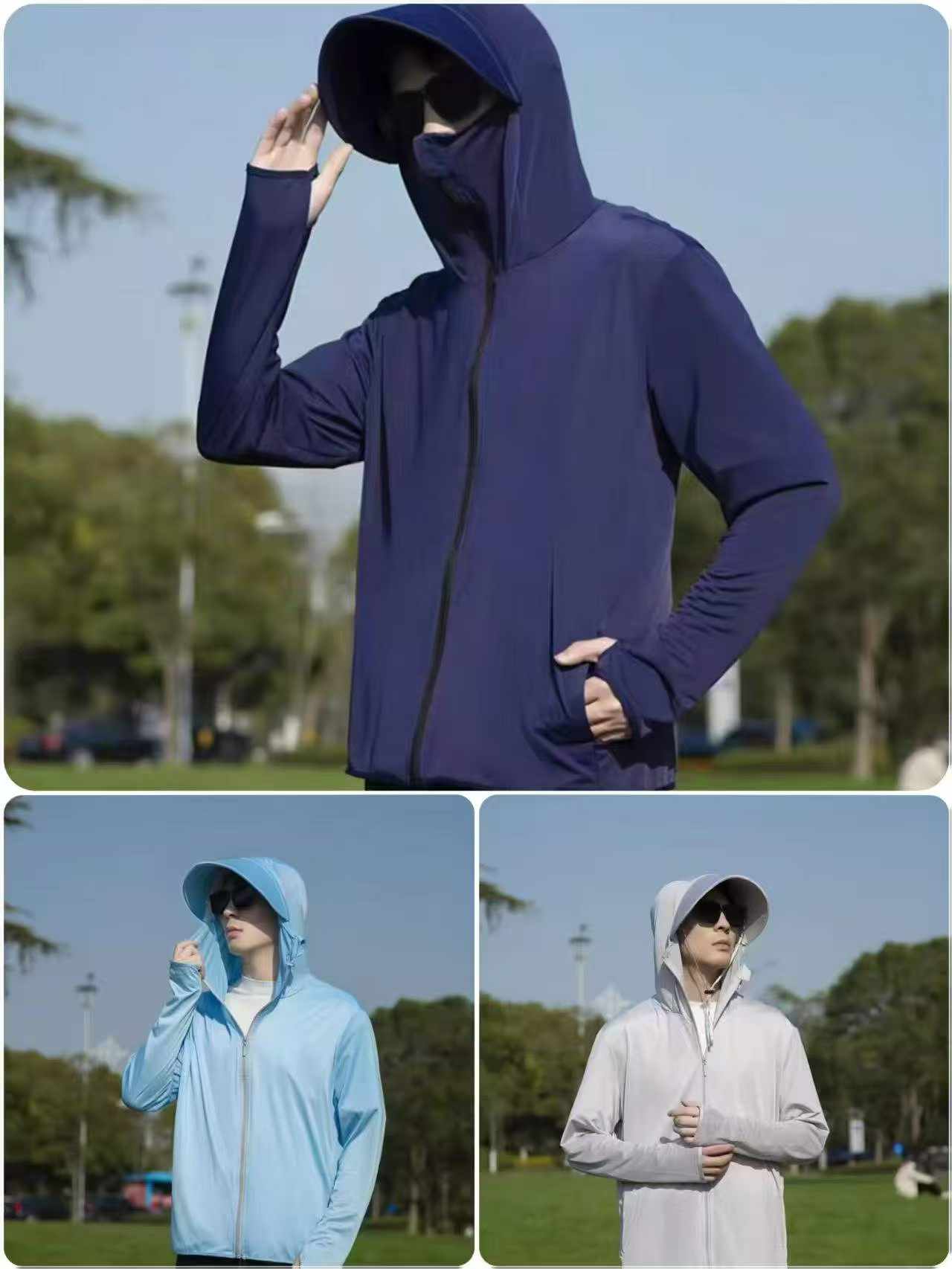 This bulk clearance lot includes 647 pieces of lightweight summer hooded sun protection jackets. Sizes range from S to 3XL, the fabric is comfortable and breathable, and each piece comes with individual packaging.