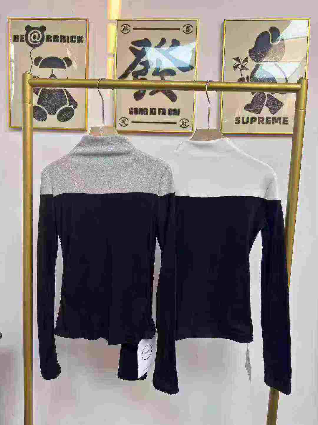 Bulk Clearance: About 350 Pcs High Quality Autumn Winter Color Block Fleece Lined Double-sided Dralon Thermal Base Tops