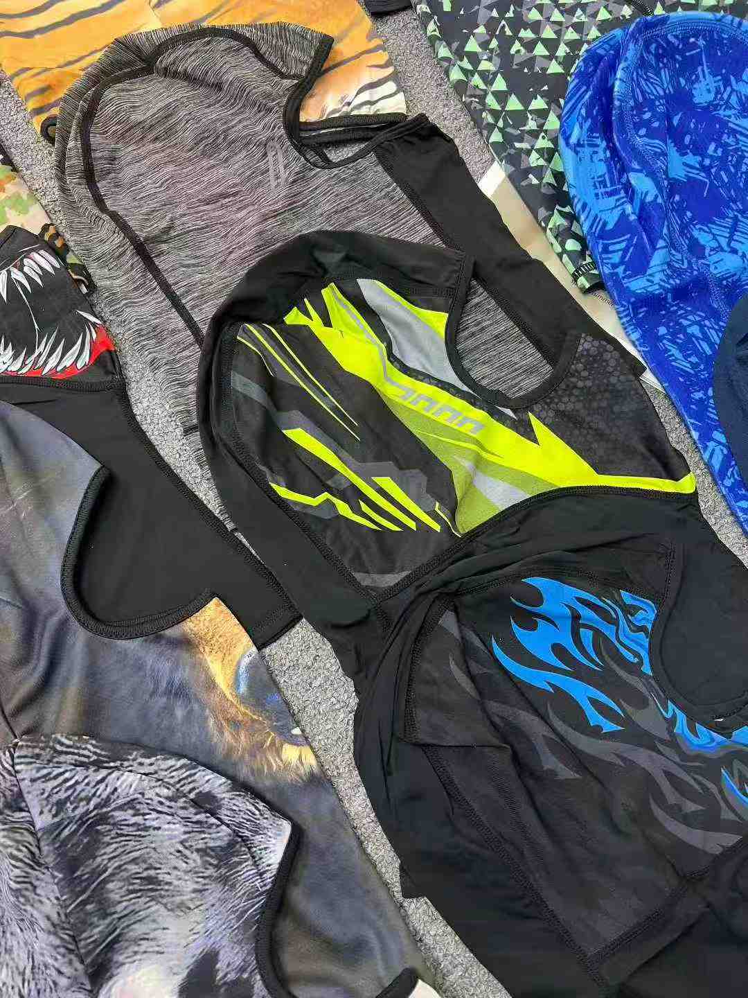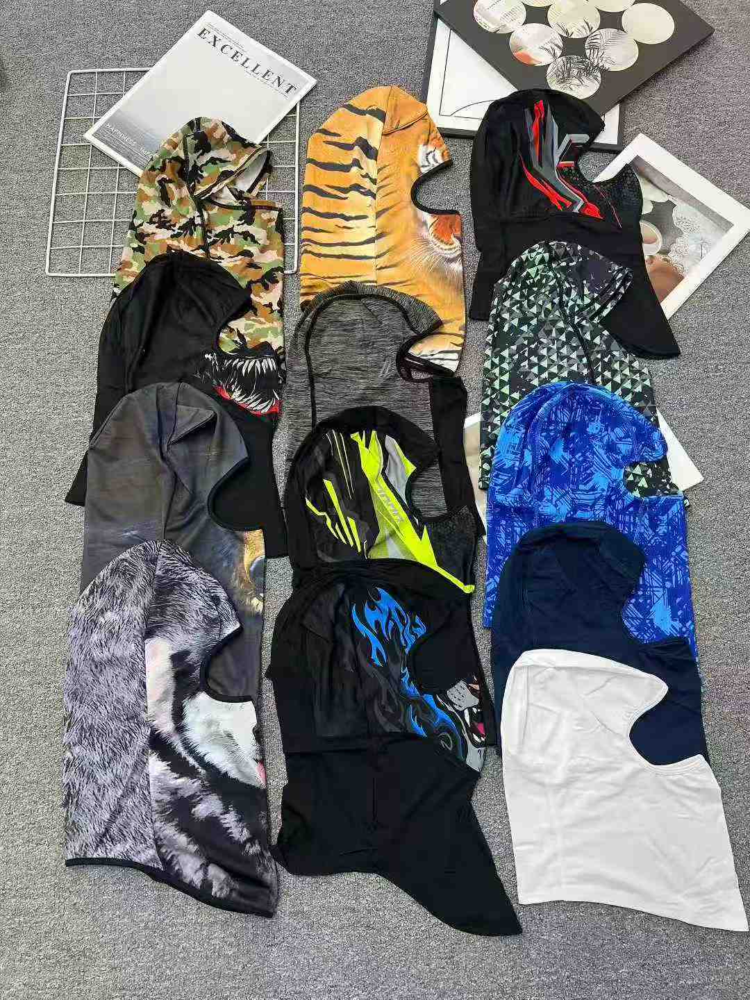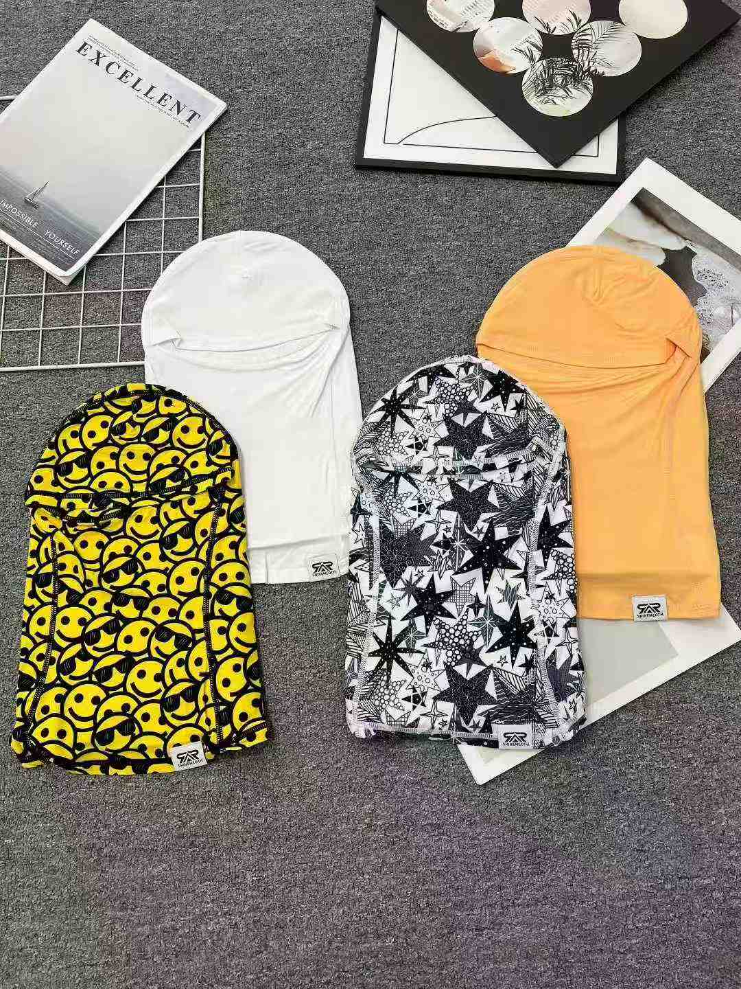 This is a batch of stock unisex outdoor headwear, made of thin high-stretch nylon ice silk. It works as sun-proof face cover and neck gaiter for cycling, hiking and other outdoor activities.