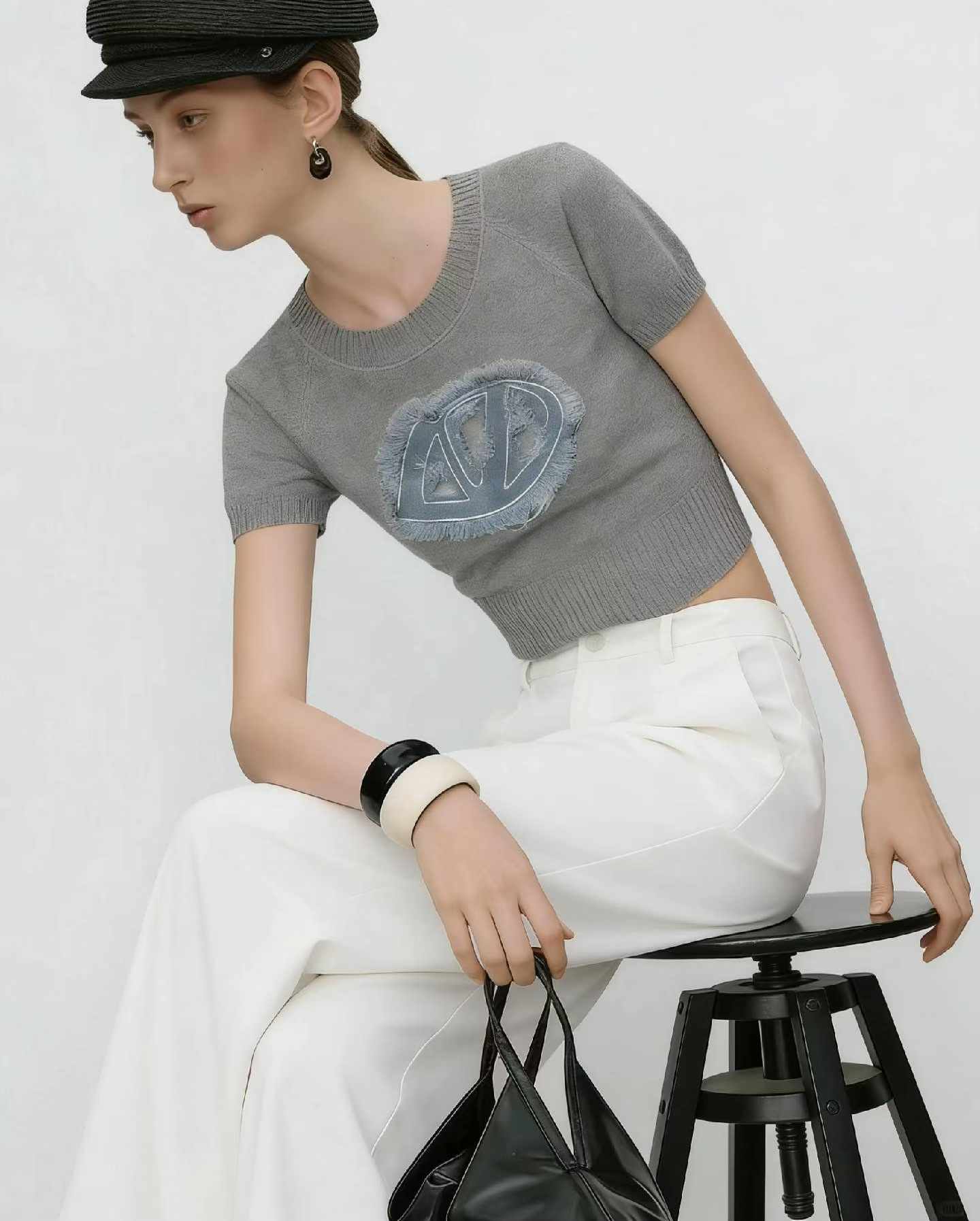 Bulk Stock Lot 180pcs Summer American Hot Girl Style Denim Patch Embroidered Ice Silk Knit Tops | Wholesale Export 6.4 CNY/PC