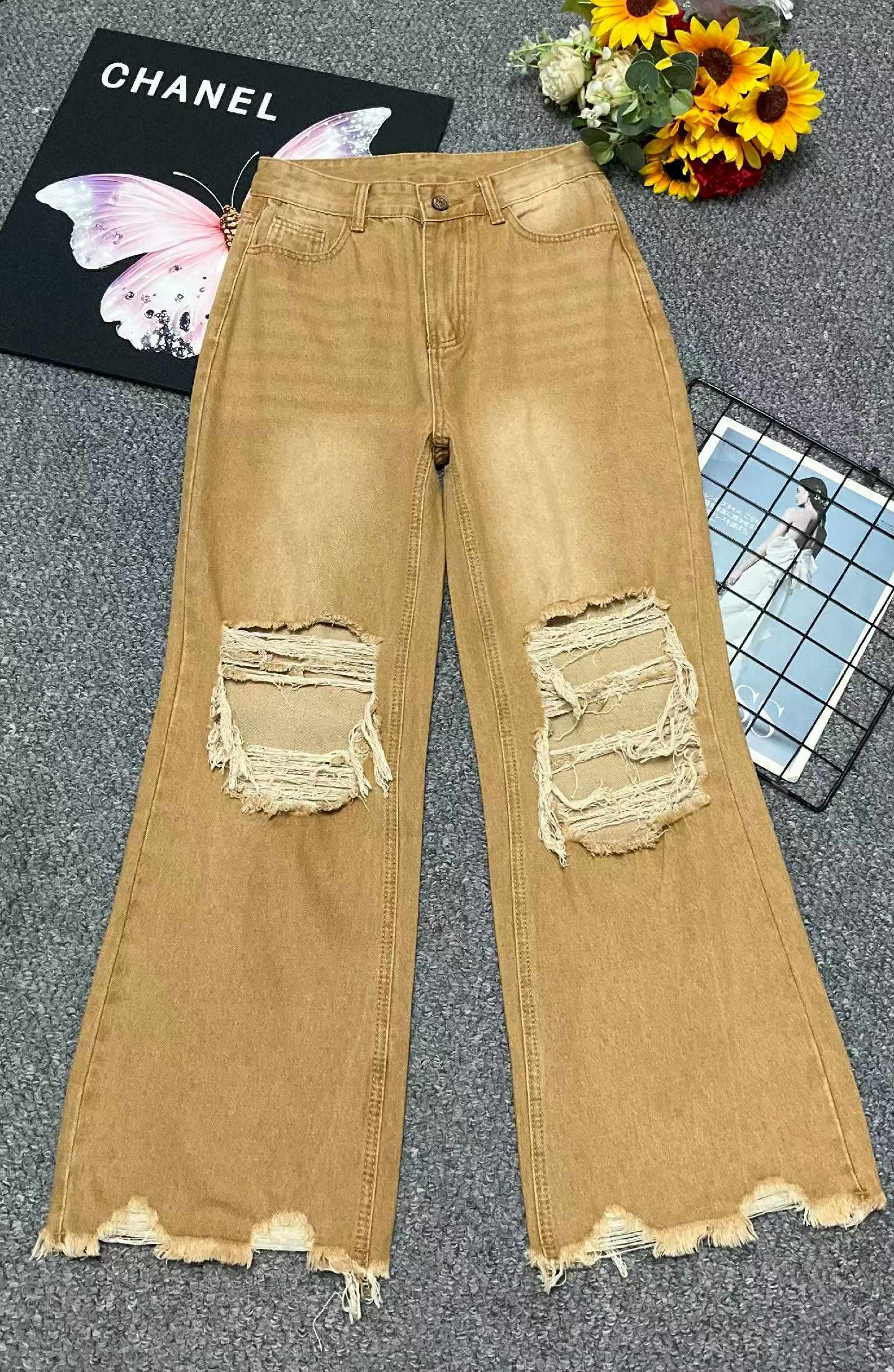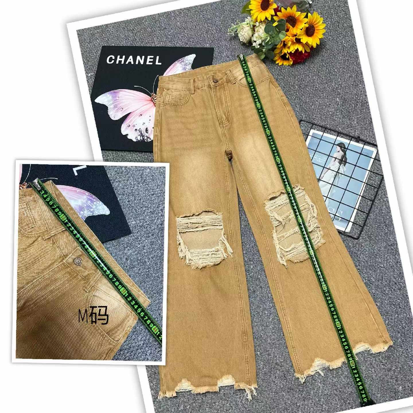 Bulk Stock Lot: Summer Branded American Style Loose Vintage Distressed Jeans, 535pcs, S-2XL, Individual Packaging, Wholesale Clearance at 10.4 CNY/Piece