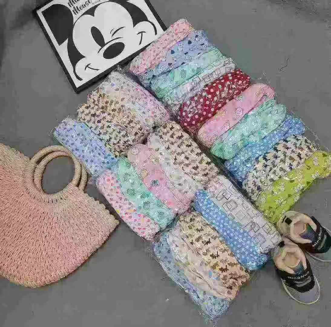 Cotton kids sleeve covers with Korean style pastoral floral design, multiple colors and patterns available. Sized 21cm*32cm, 5 pairs per pack, around 19888 pairs total in stock for wholesale.