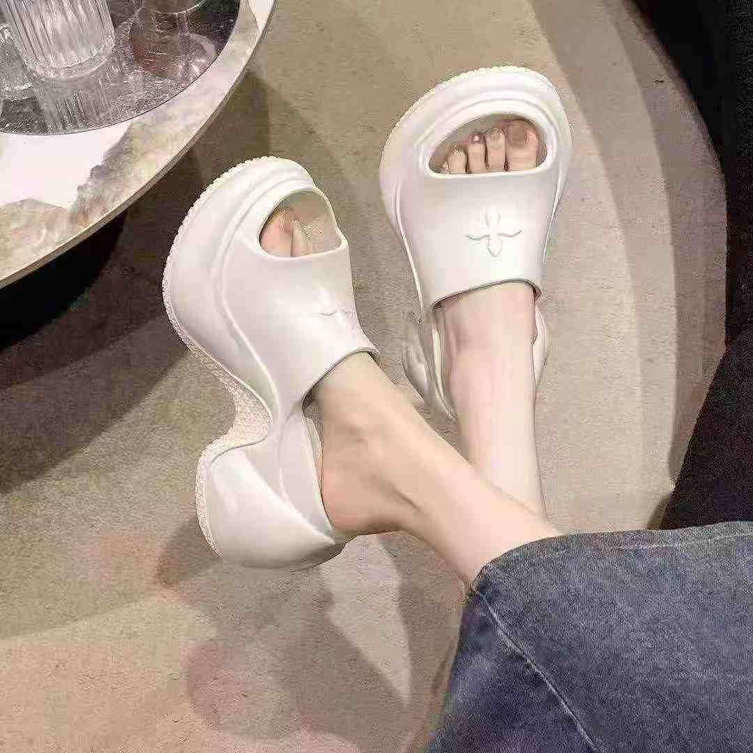 This wholesale lot consists of fashionable platform sandals and flip flops. Features include a 9cm thick sole for height increase, two distinct upper patterns, and three color options. Available in sizes 35-40, each pair comes in independent packaging. The lot is ready for bulk export.
