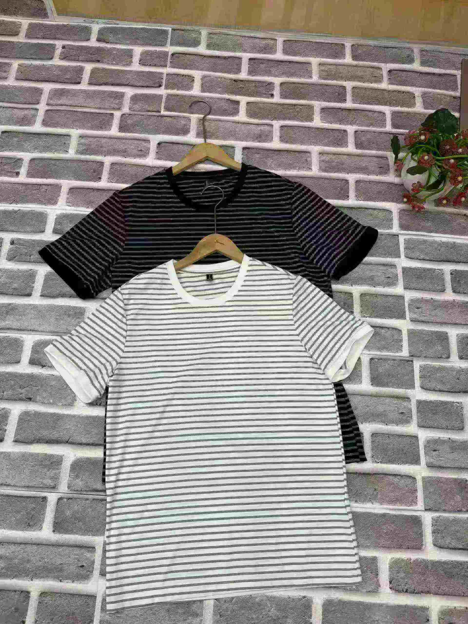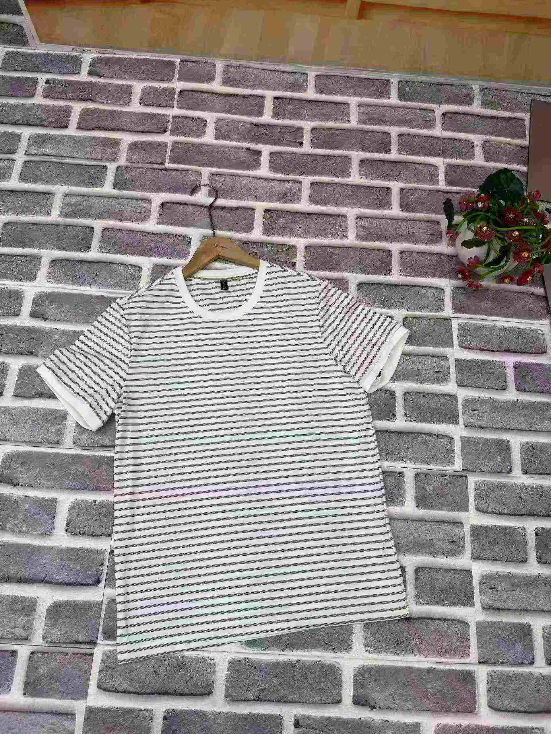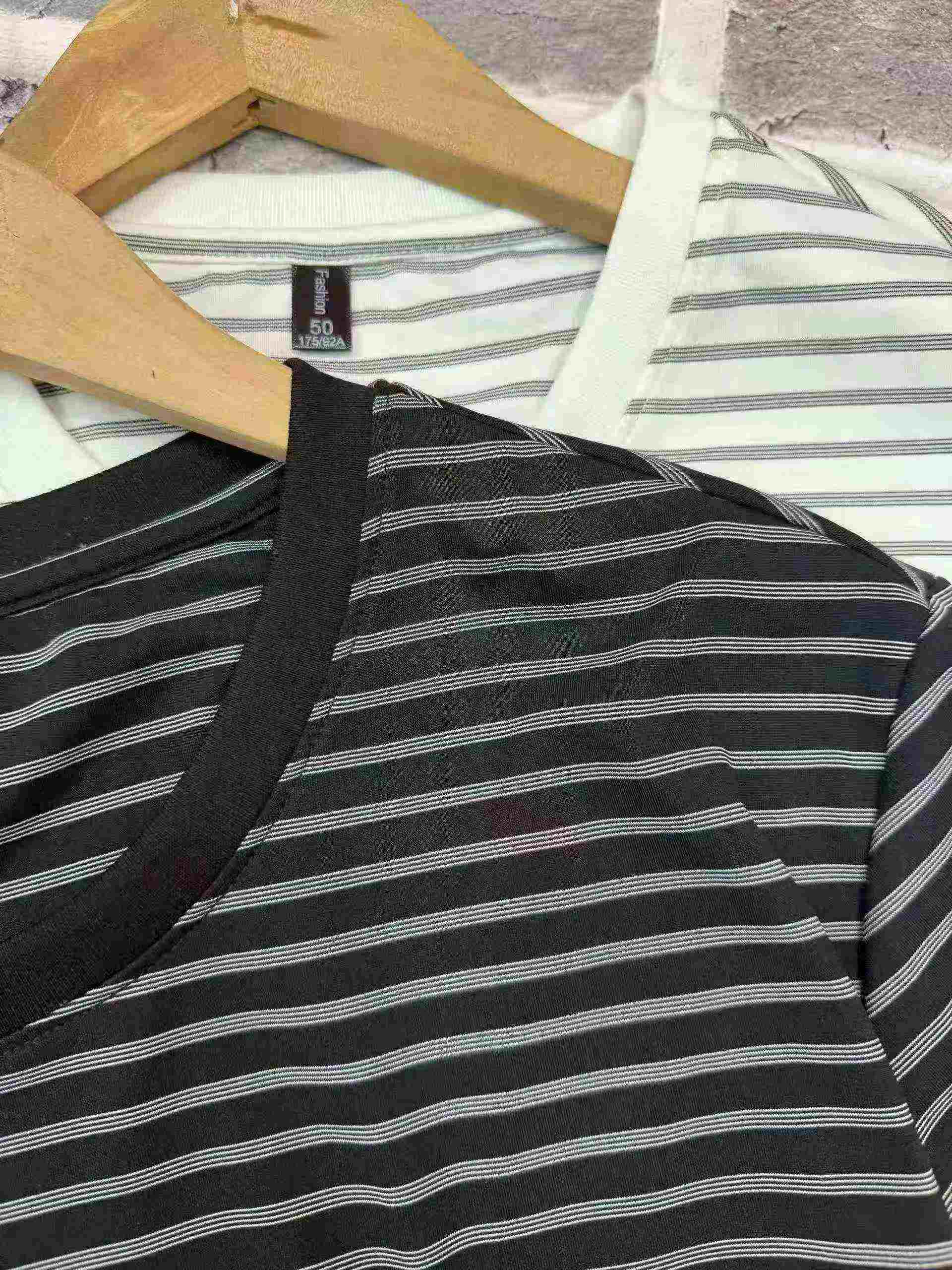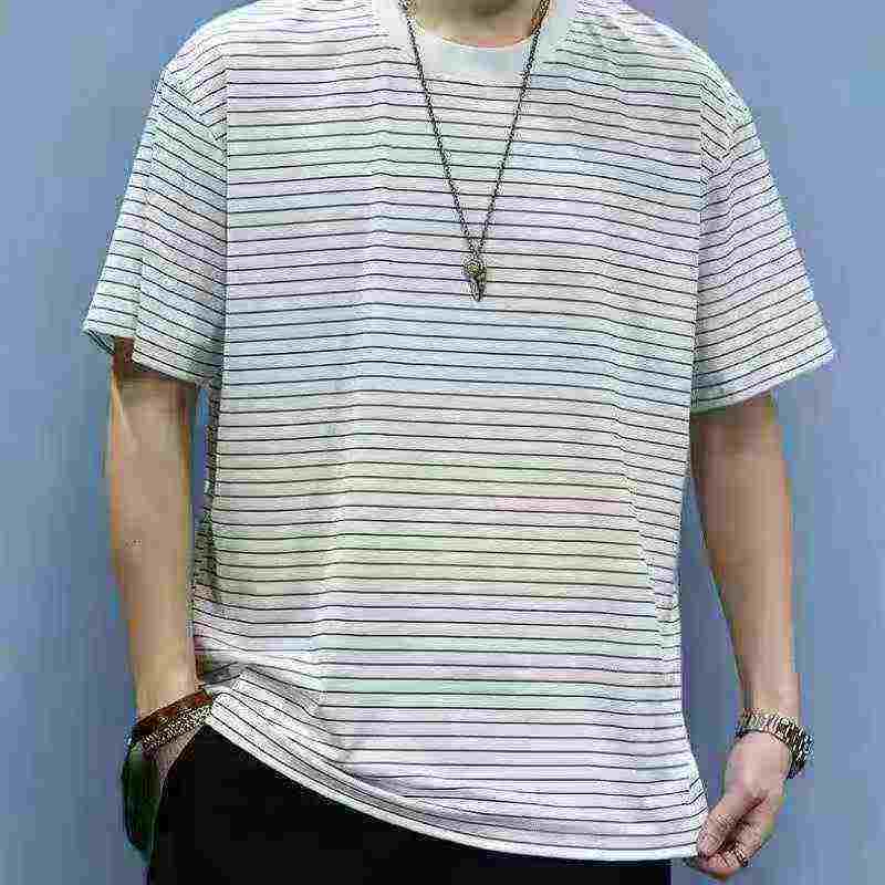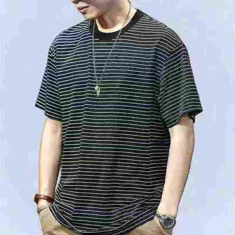 Clearance Bulk Stock 420 Pcs Men’s Summer Striped Loose Crew Neck Short Sleeve T-Shirts Wholesale