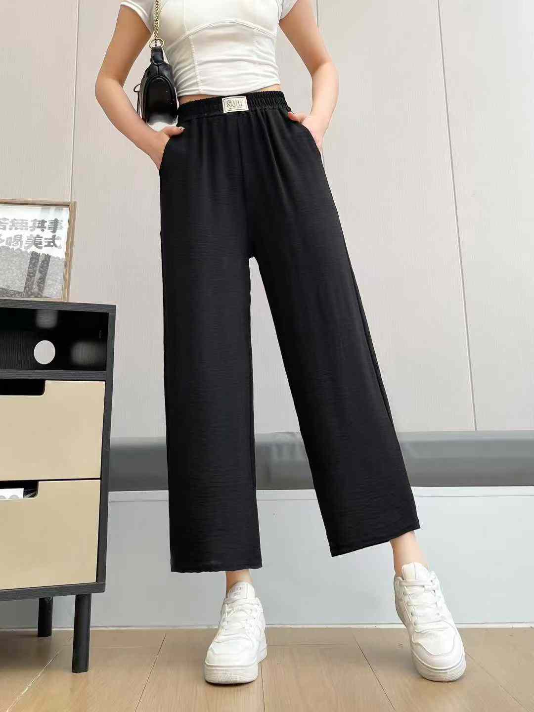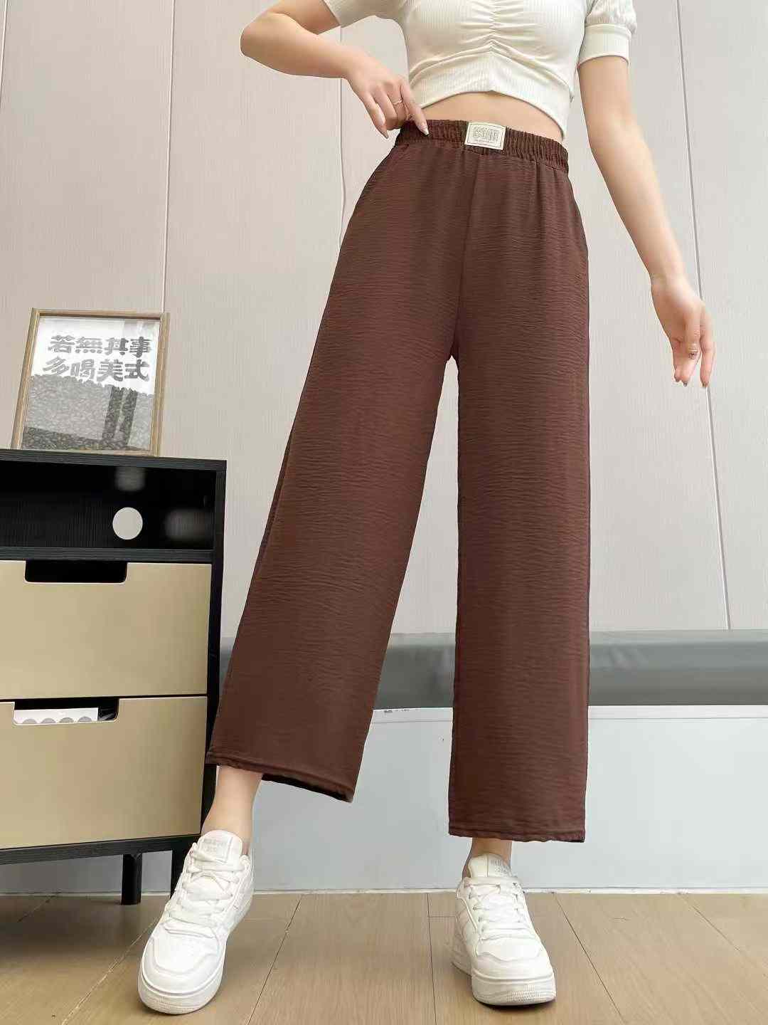 Clearance Bulk Summer Ice Silk Crepe Elastic Waist Wide Leg Cropped Pants For Middle-Aged Elderly Women Stock Wholesale