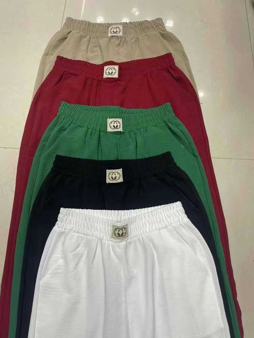 This is a bulk stock lot of women’s casual pants designed for middle-aged and elderly ladies. It features elastic waist, ice silk crepe fabric, comes in sizes 2XL to 5XL with picture colors available, suitable for summer casual wear.