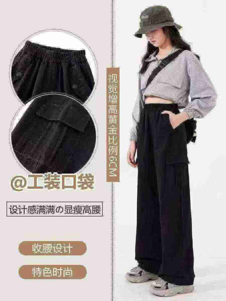 Clearance Bulk Unisex Big Kids Cotton Multi-pocket Wide Leg Cargo Sports Pants, Total 1622 Pieces