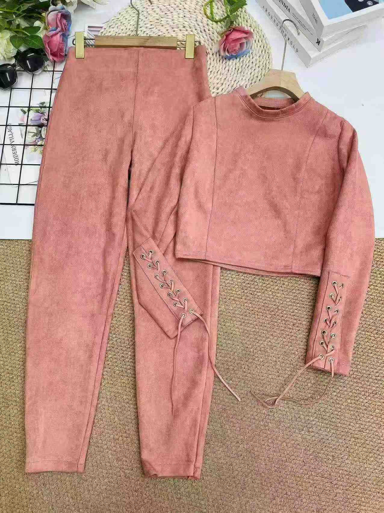 Clearance Long Sleeve Faux Suede Matching Sets | Chinese Stock Clothing Wholesale Export, 83 Sets Total