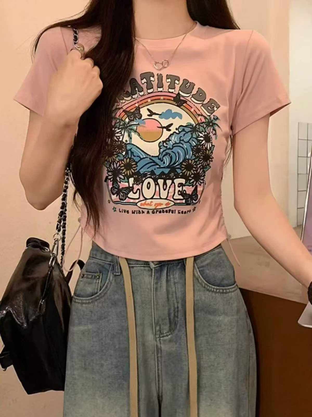 Clearance Sale: Summer Trendy Cropped Cotton Drawstring T-Shirts | Chinese Clothing Stock Lots Wholesale Export