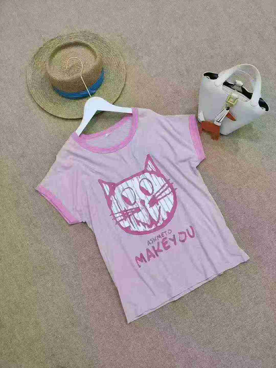 This lot includes 337 pieces of casual letter cat slub cotton T-shirts with individual packing in good condition, part of our Clothing Stock Lots.